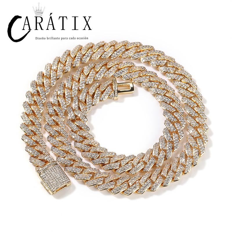 CARÁTIX – 15mm Miami Cuban Chain Necklace | Prong 5A CZ Bling Hip Hop Jewelry for Men & Women
