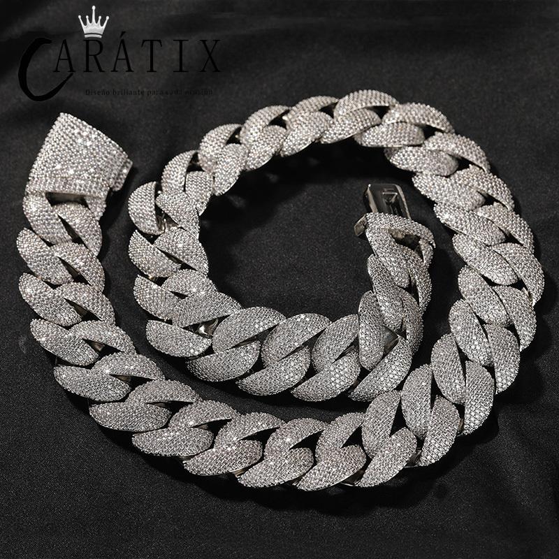 CARÁTIX – 20mm 3-Row Thick Cuban Link Chain Necklace | Bling Iced Hip Hop Jewelry for Men