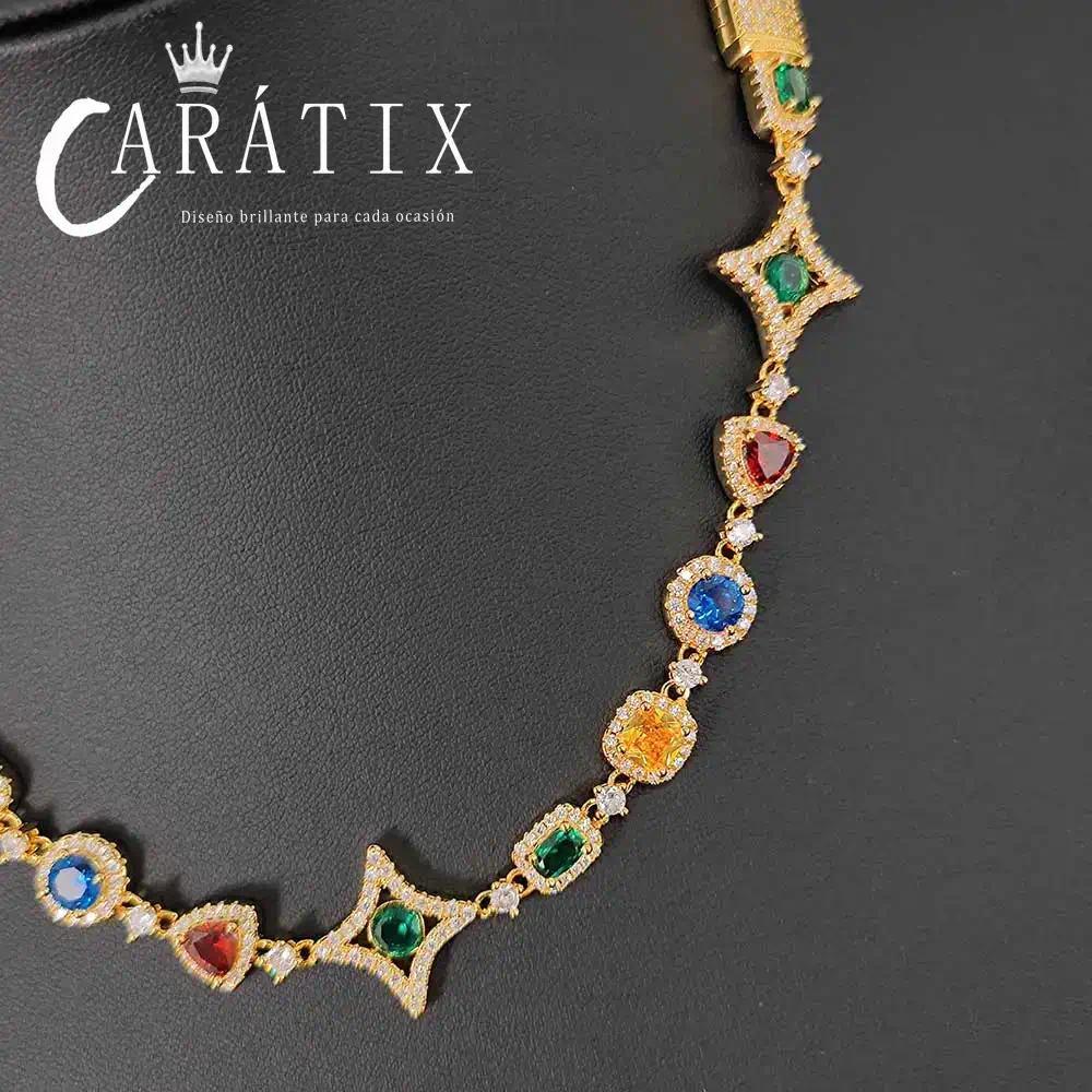 CARÁTIX - 10mm Custom Multi Color Enamel Bling Cz Stone Chain Silver Geometric Gemstone Motif Chain Necklace Valentine's Day Gift for Men & Girls & Boys Mothers' Day Gift #Springtok