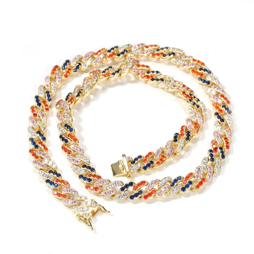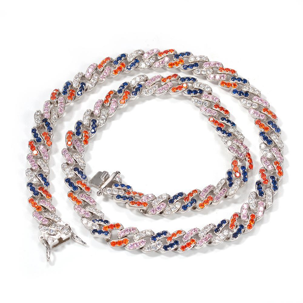10MM Colorful Cylindrical Iced Out Diamond Necklace Chain – Luxury Hip Hop Jewelry for Men & Women