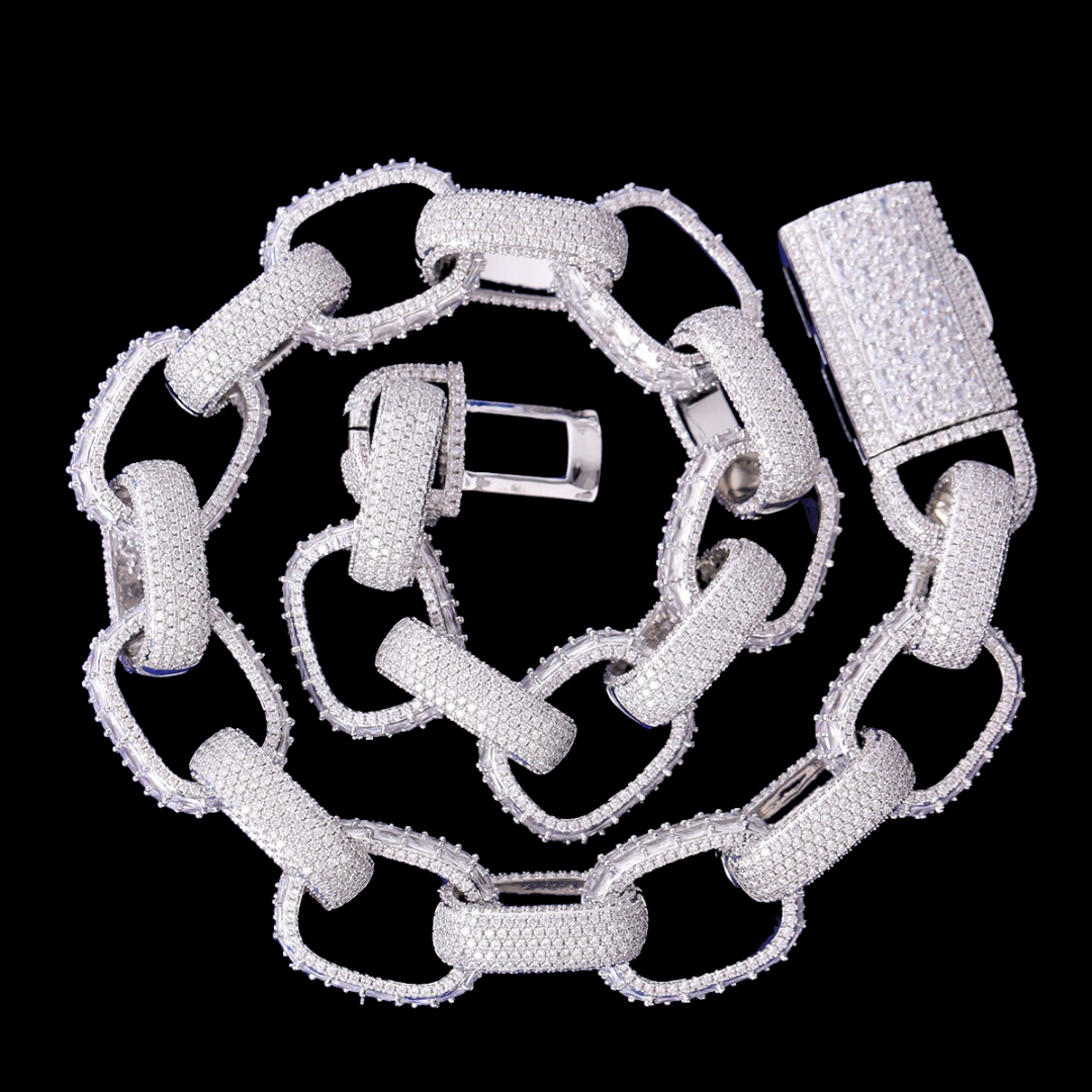 20MM Full Baguette Linked Iced Out Diamond Necklace Chain – Luxury Hip Hop Jewelry for Men & Women
