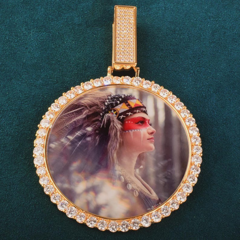 Big Round Shape Custom Photo Pendant Make Memory Picture Hip Hop Necklace Chain For Men Women Solid Back Bling Zircon Jewelry