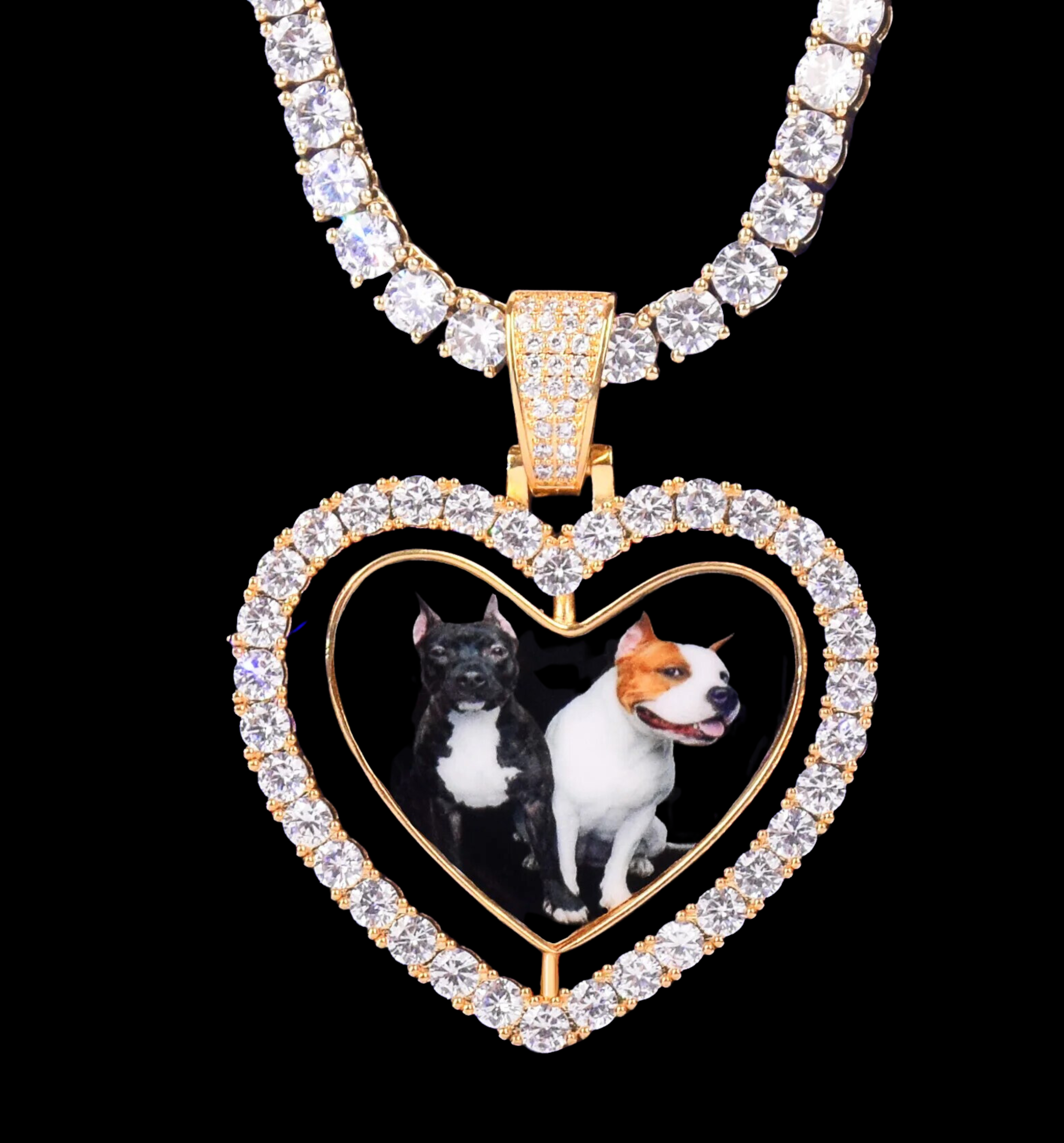 Rotating Double-Sided Heart Tennis Custom Photo Pendant Necklace – Iced Out Hip Hop Jewelry