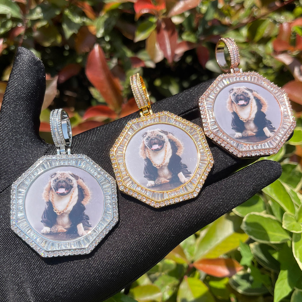 Baguette Octagon Custom Photo Pendant Necklace – Iced Out Hip Hop Jewelry with Stones