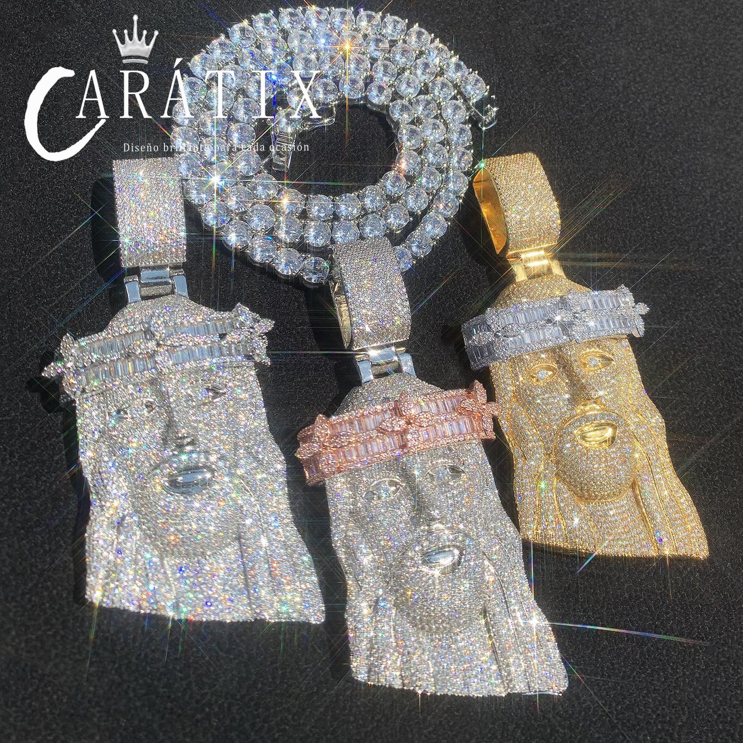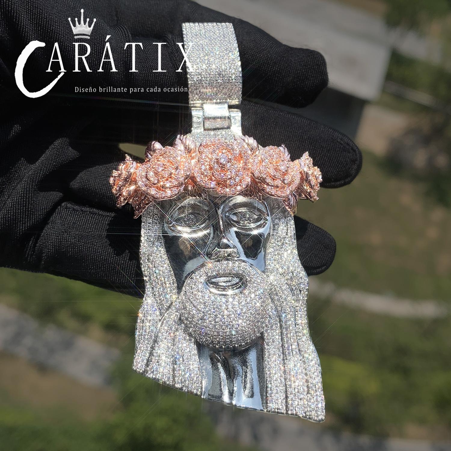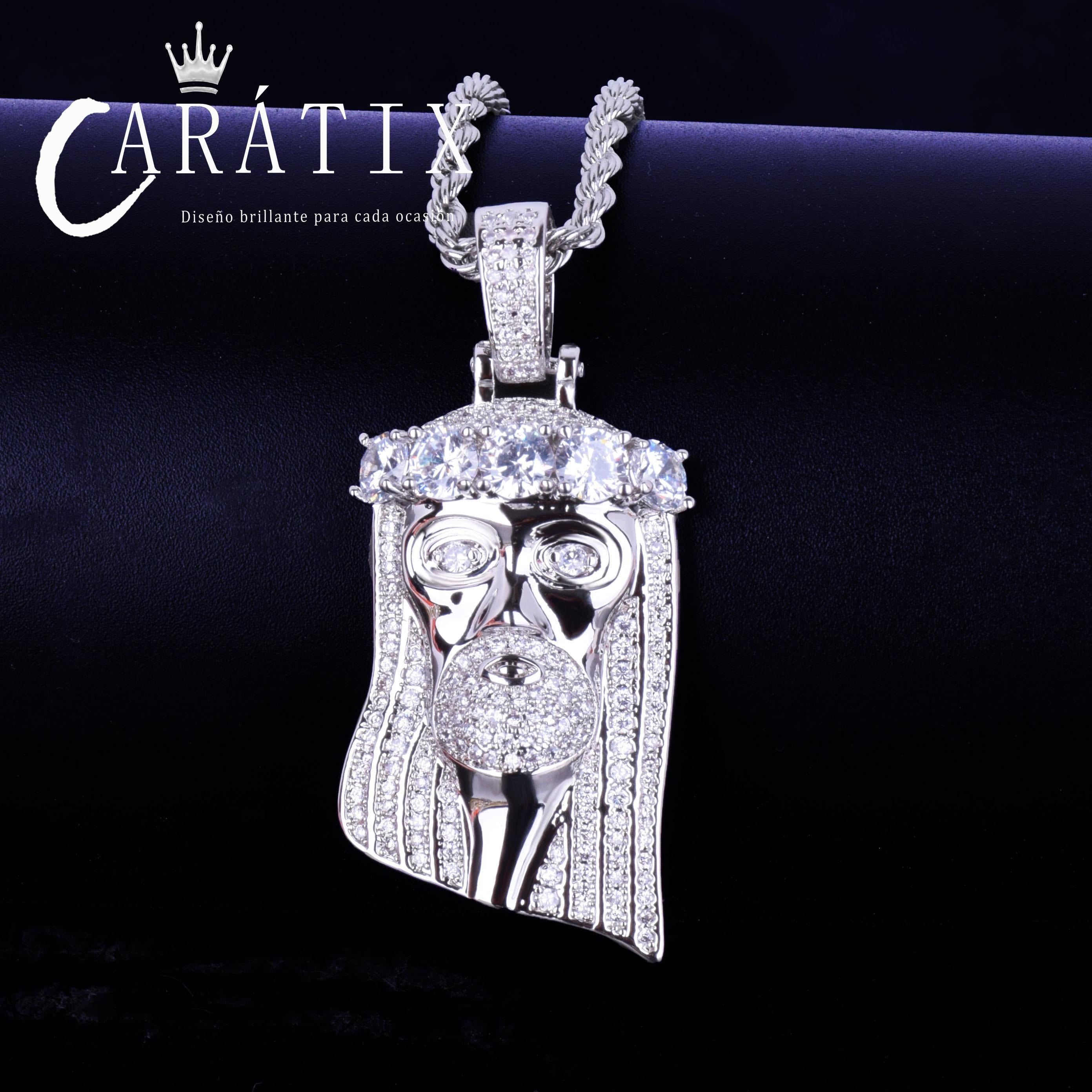 CARÁTIX -Iced Out Ratten Jesus Necklace Pendant for Men Prong Setting Hip Hop Jewelry Valentine's Day Gift for Men & Girls & Boys Mothers' Day Gift #Springtok