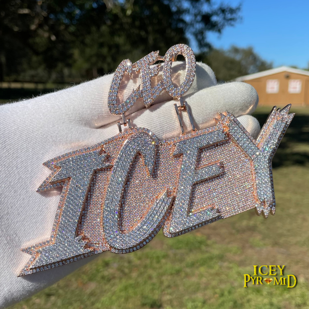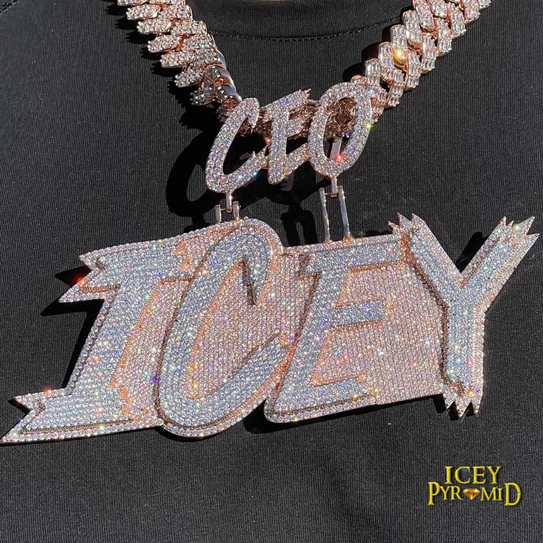 All Caps Bold and Bling Iced Out Personalized Custom Name Necklace Pendant - Luxury Custom Jewelry