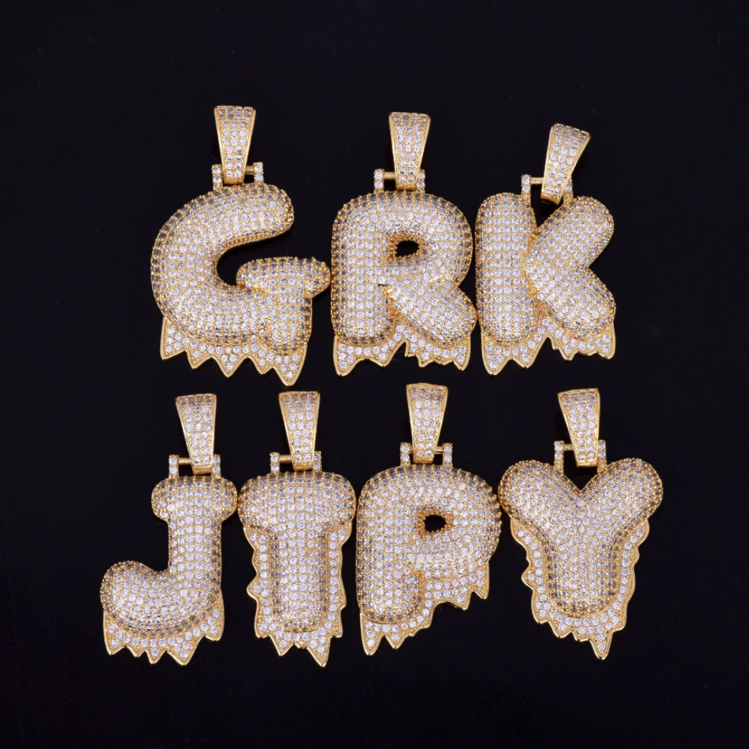 Drippy Letters Iced Out Personalized Custom Name Necklace Pendant - Luxury Custom Jewelry