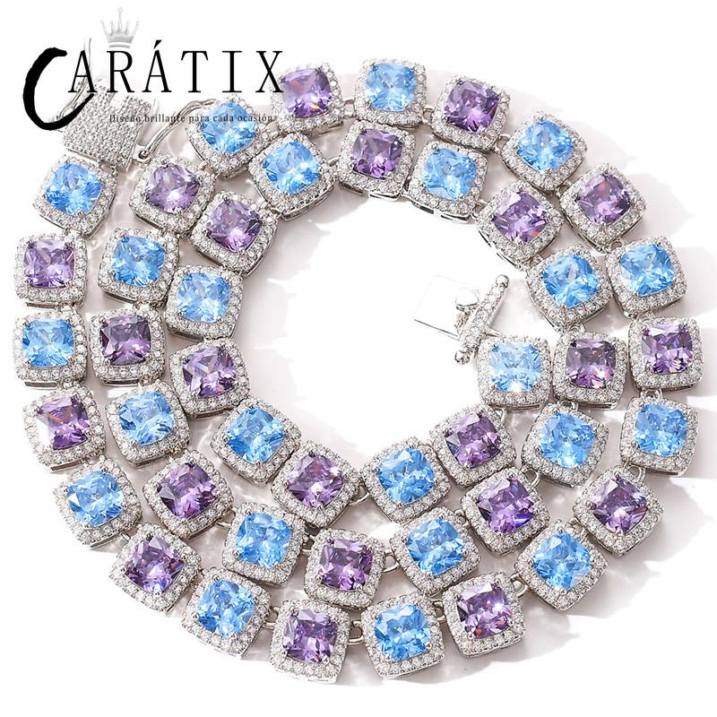 CARÁTIX - Hip Hop Bling Iced Out Geometric Square Blue Purple 5A+ CZ Stone Tennis Link Chain Chokers Necklaces for Men Rapper Jewelry Valentine's Day Gift for Men & Girls & Boys Mothers' Day Gift #Springtok