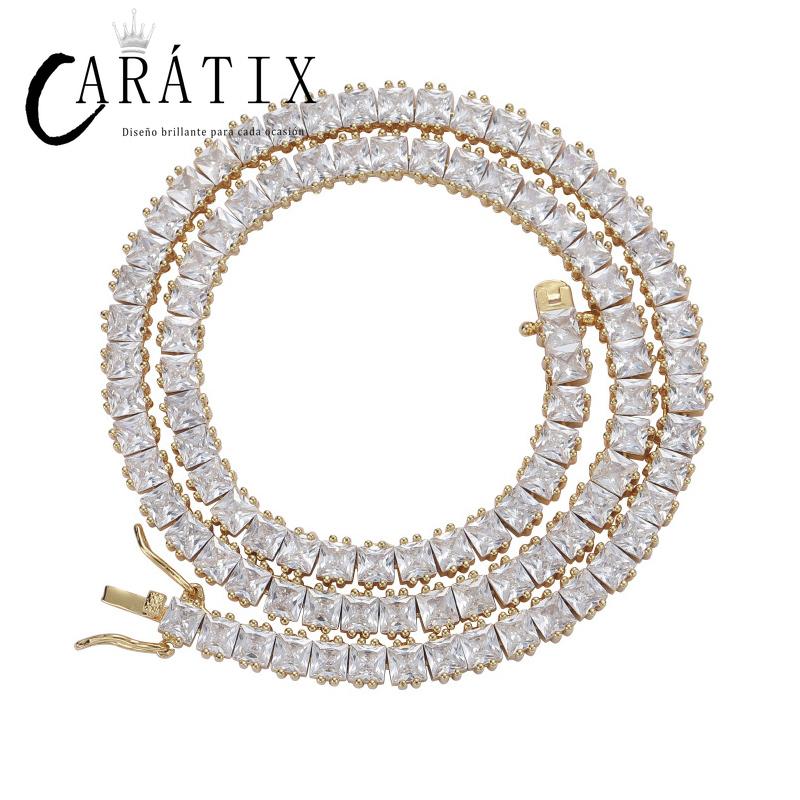 CARÁTIX - Hip Hop 4*4mm Square CZ Stone Paved Bling Iced Out Tennis Link Chain Chokers Necklaces for Men Women Rapper Jewelry Valentine's Day Gift for Men & Girls & Boys Mothers' Day Gift #Springtok