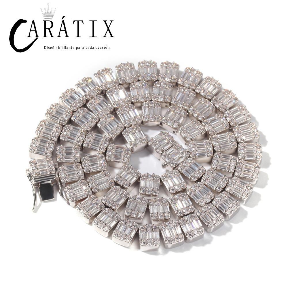 CARÁTIX - Hip Hop Bling Iced Out 1 Row Square AAA CZ Stone Tennis Chain Cubic Zirconia Chokers Necklaces for Men Rapper Jewelry Valentine's Day Gift for Men & Girls & Boys Mothers' Day Gift #Springtok