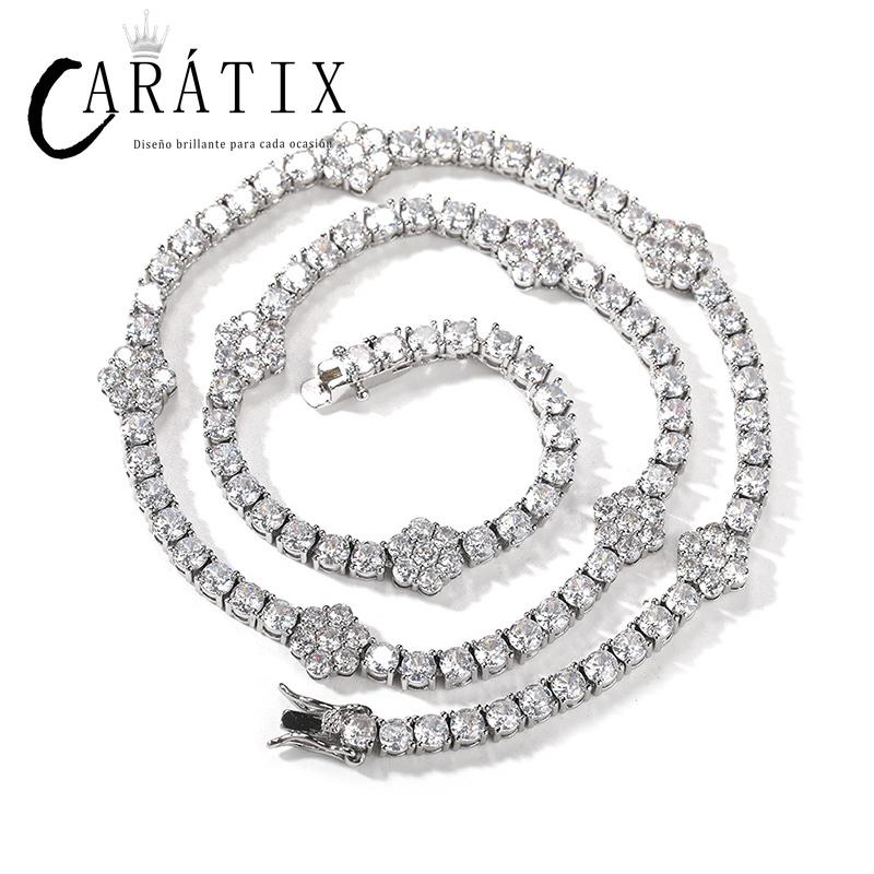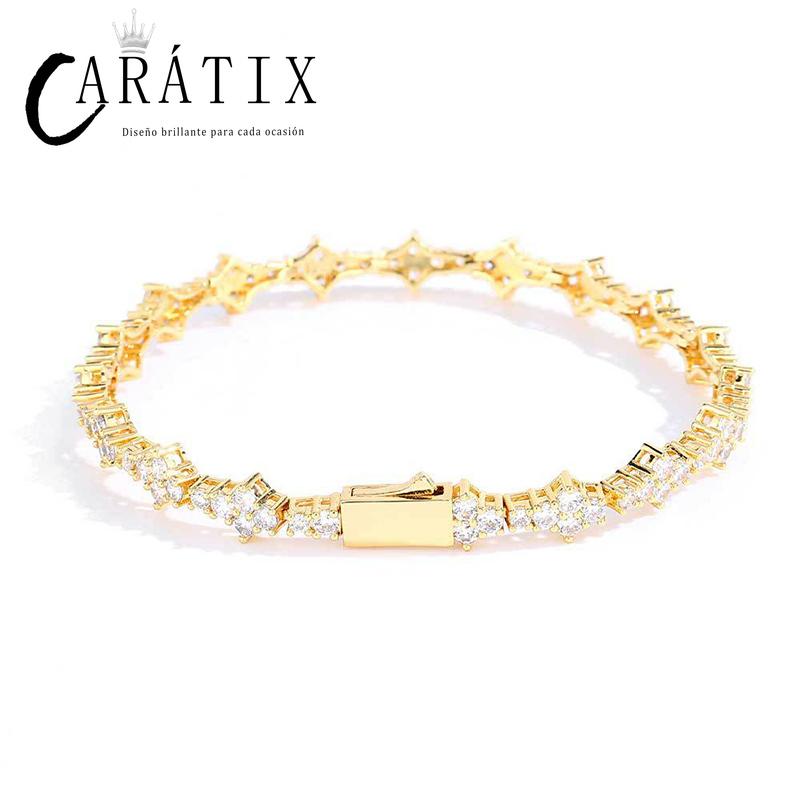CARÁTIX - Hip Hop Bling Iced Out 1 Row CZ Stone Flower Tennis Link Chain Bracelet for Men Women Fashion Rapper Jewlery Valentine's Day Gift for Men & Girls & Boys Mothers' Day Gift #Springtok