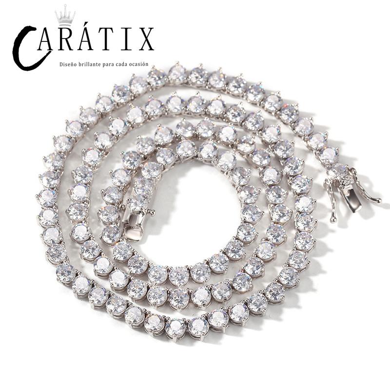 CARÁTIX - Hip Hop Claw Setting 3A+ CZ Stone Bling Iced Out 4mm Spring Clasp Tennis Link Chain Chokers Necklaces for Men Rapper Jewelry Valentine's Day Gift for Men & Girls & Boys Mothers' Day Gift #Springtok