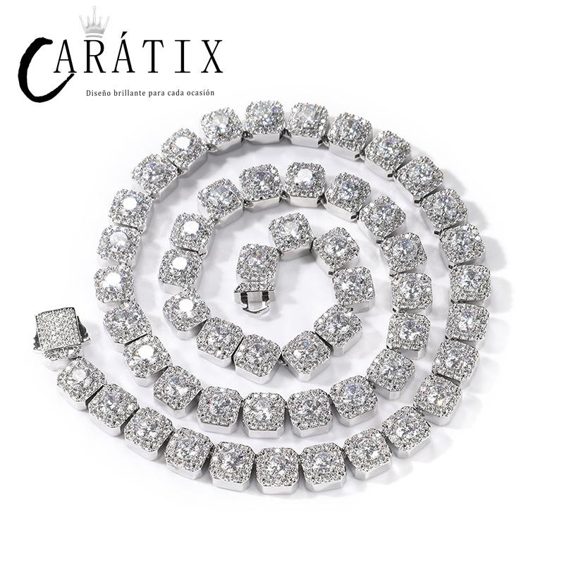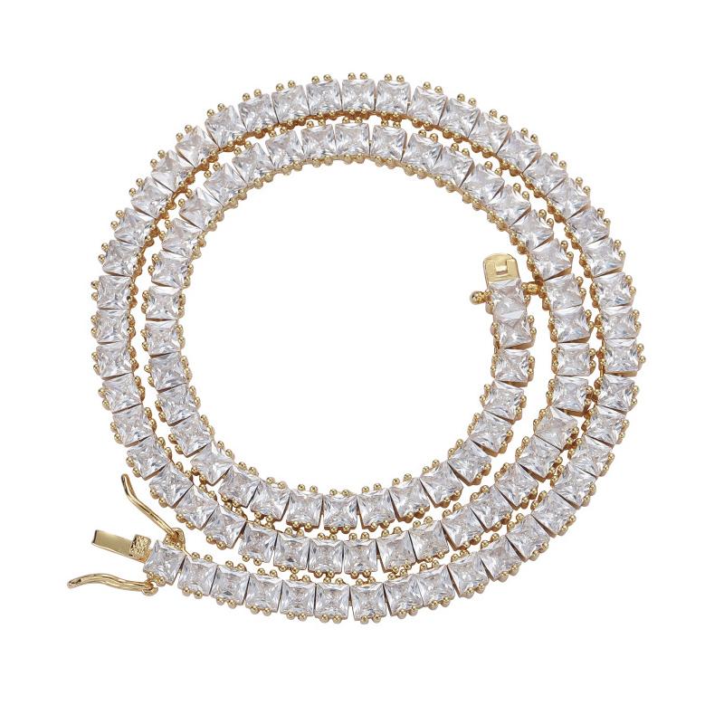 9MM Square Clustered Tennis Iced Out Diamond Necklace Chain – Luxury Hip Hop Jewelry for Men & Women