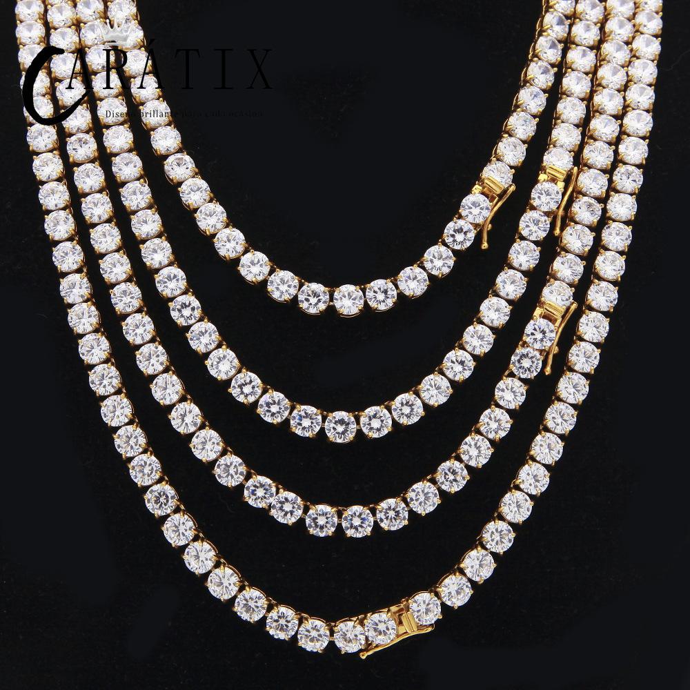 CARÁTIX - 2.5-5mm Hip Hop Claw Zircon Bling Iced Out 1 Row CZ Stone Tennis Link Chain Chokers Necklaces for Men Women Rapper Jewelry Gift Valentine's Day Gift for Men & Girls & Boys Mothers' Day Gift #Springtok