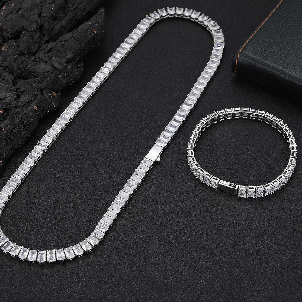 CARÁTIX - 6mm Rectangular Zircon Bling Women Tennis Chain Full Inlaid Sugar Tennis Necklace Laser Valentine's Day Gift for Men & Girls & Boys Mothers' Day Gift #Springtok