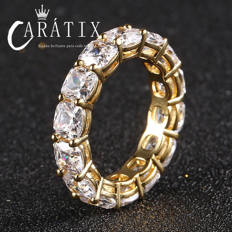 Caratix-Personalized Cuban Ring Trend Men's and Women's Plated Row Hip Hop Wind Copper Zircon Ring High Quality Hip Hop Ring