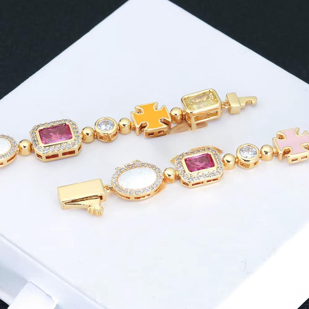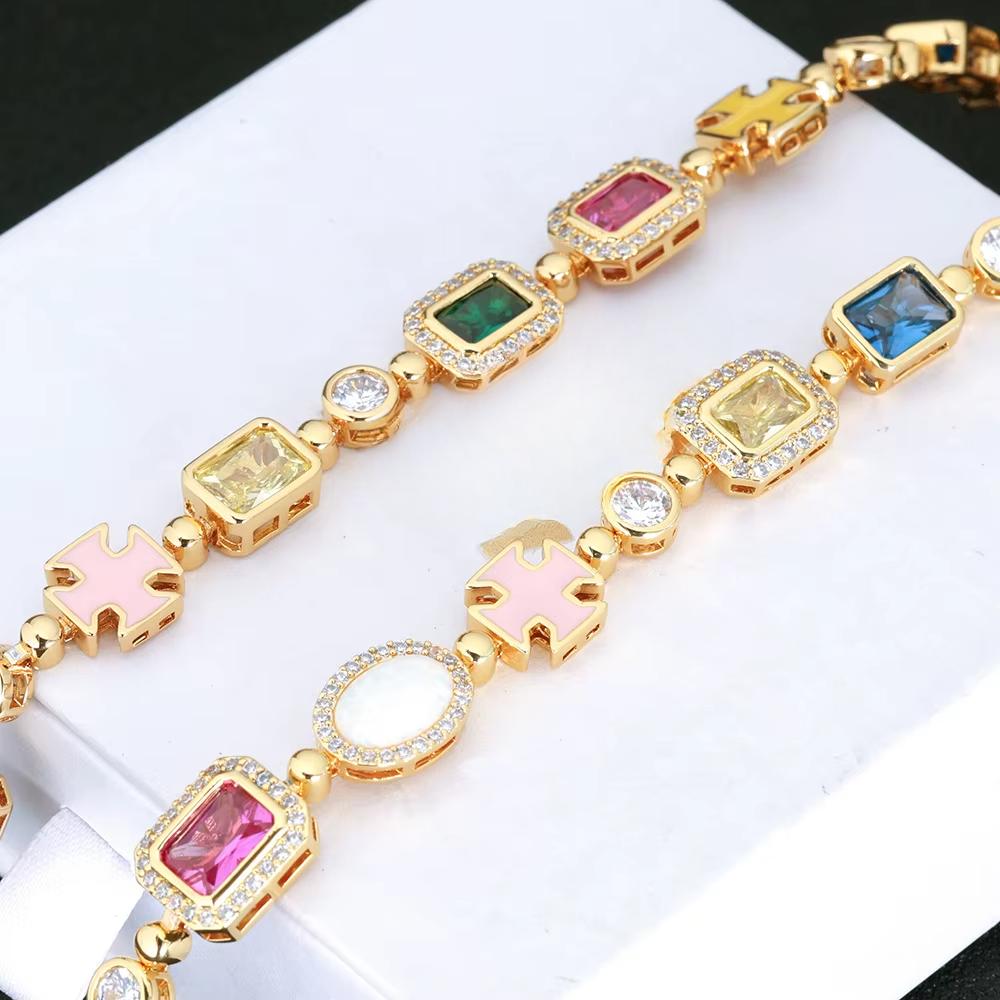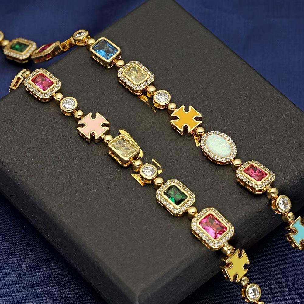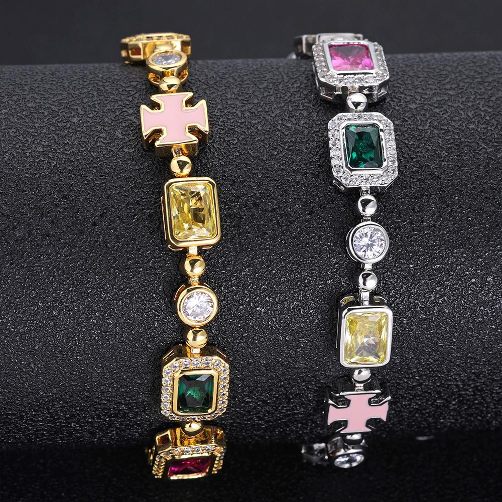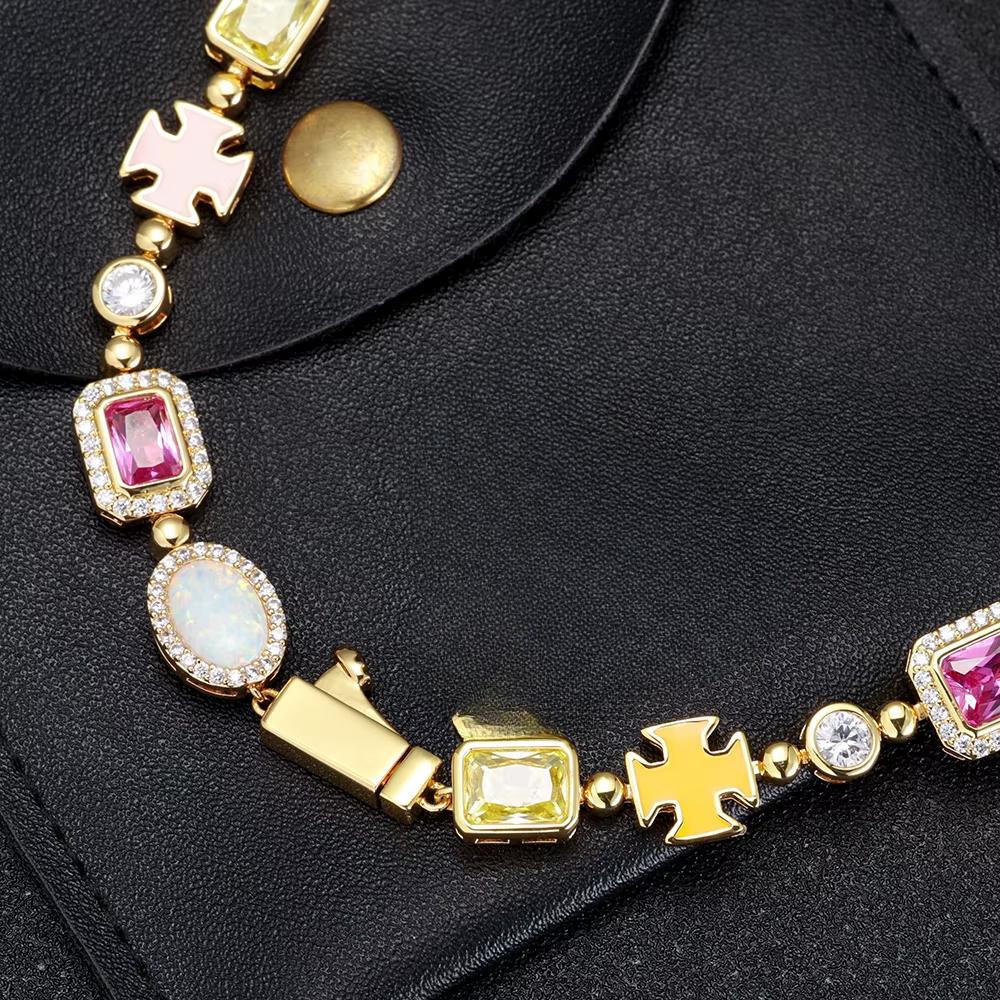 CARÁTIX - 10mm Custom Multi Color Enamel Bling Cz Stone Chain Silver Geometric Gemstone Motif Chain Necklace Valentine's Day Gift for Men & Girls & Boys Mothers' Day Gift #Springtok