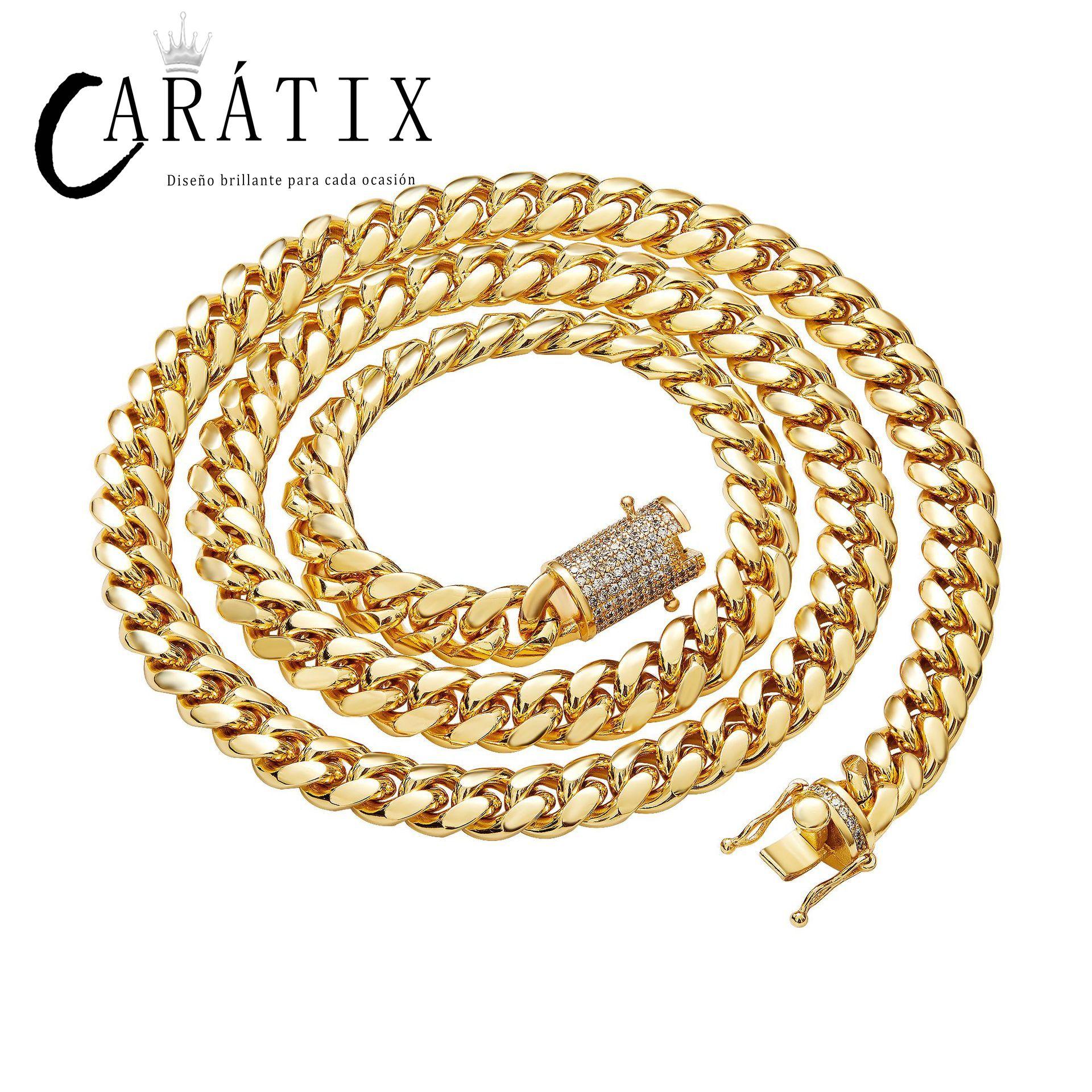 CARÁTIX 10MM Stainless Steel Miami Cuban Chain Necklace – Hip Hop Iced Out Jewelry with CZ Zircon for Men & Women
