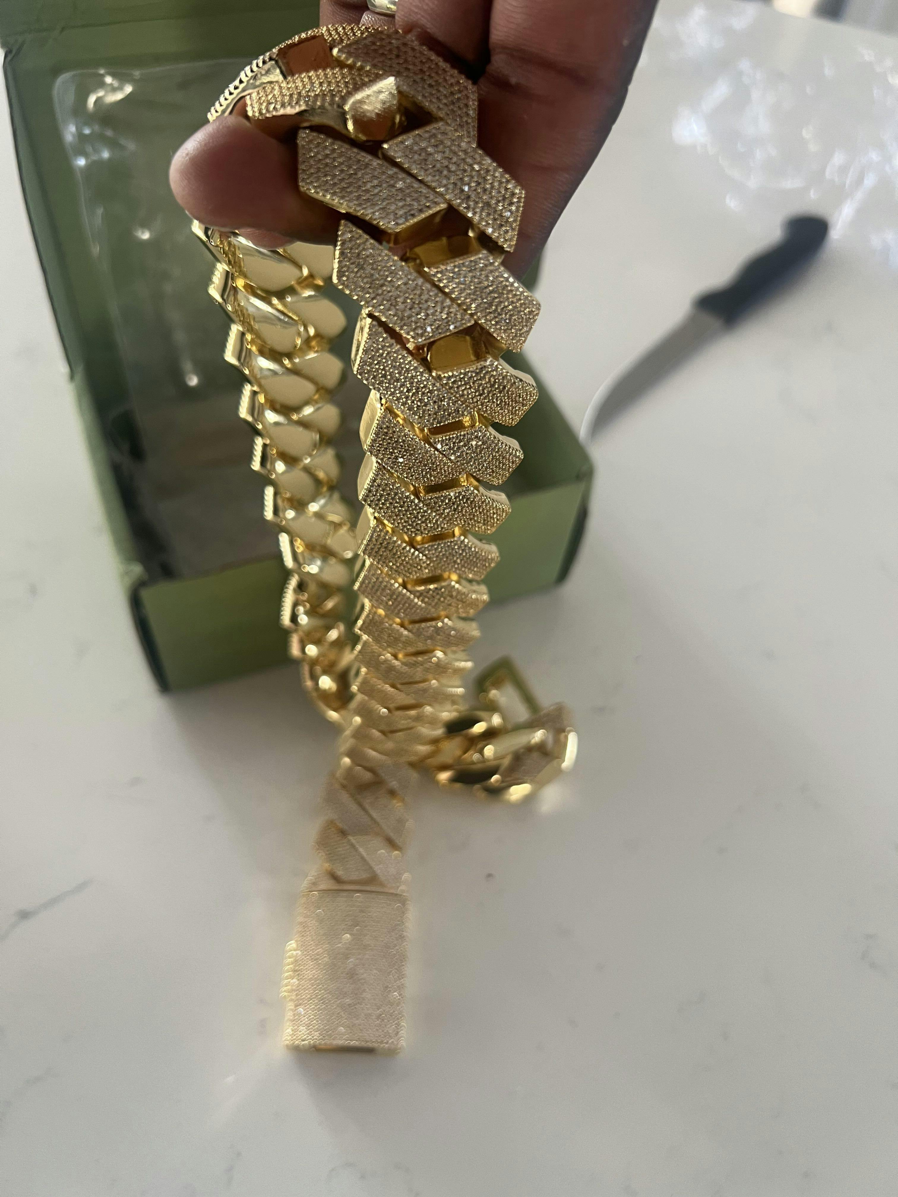 • CZ Prong Setting: Each link is meticulously set with sparkling cubic zirconia stones for a dazzling, iced-out finish.