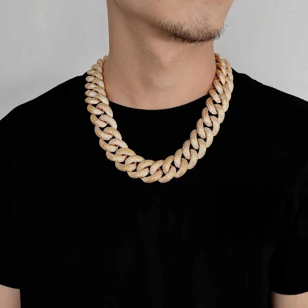 CARÁTIX - 25Mm Miami Cuban Chain Bling Zircon Jewelry Zircon Thick Link Necklace Valentine's Day Gift for Men & Girls & Boys Mothers' Day Gift #Springtok