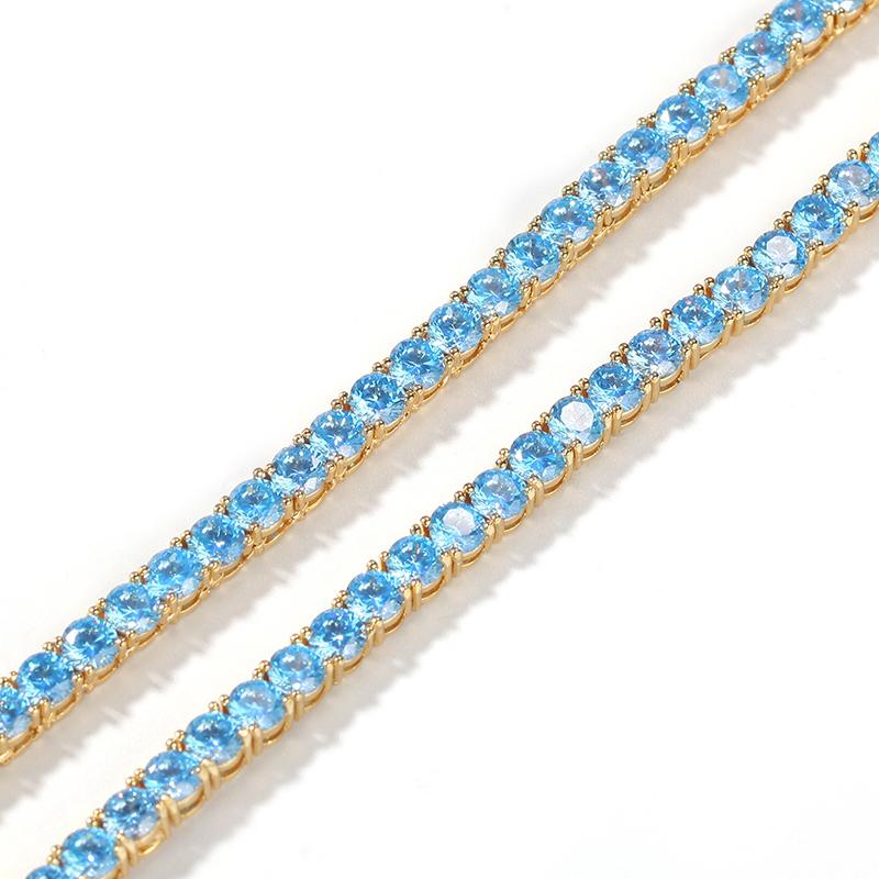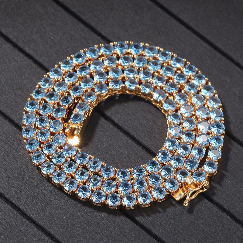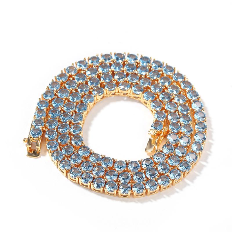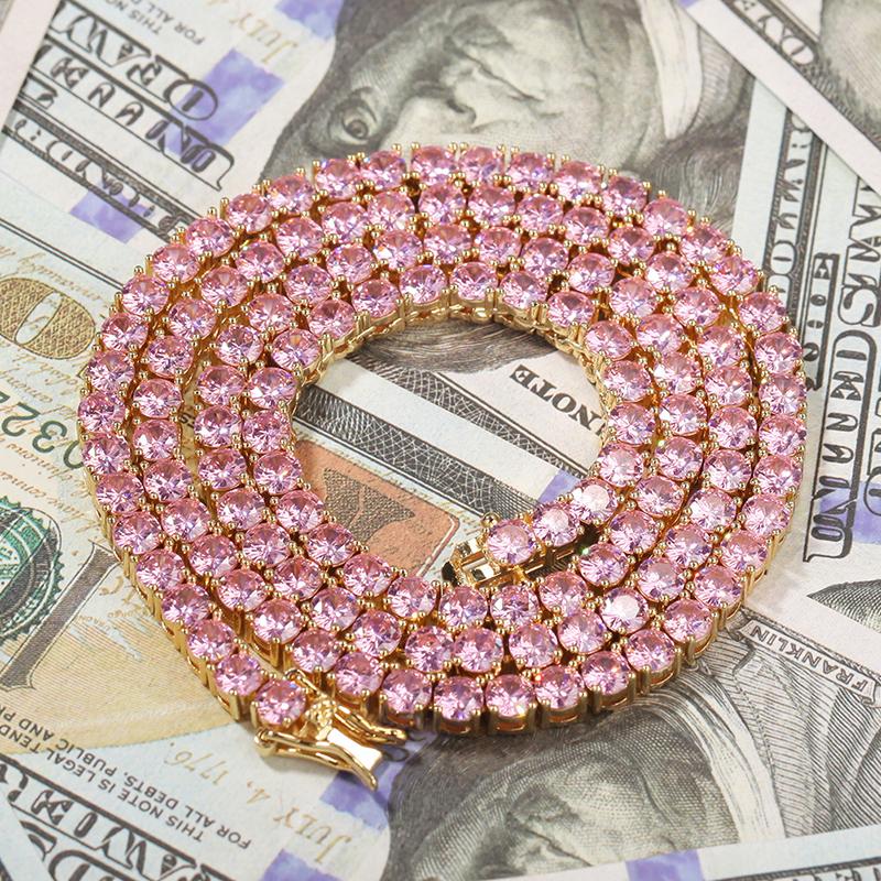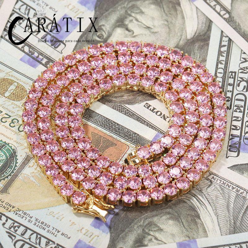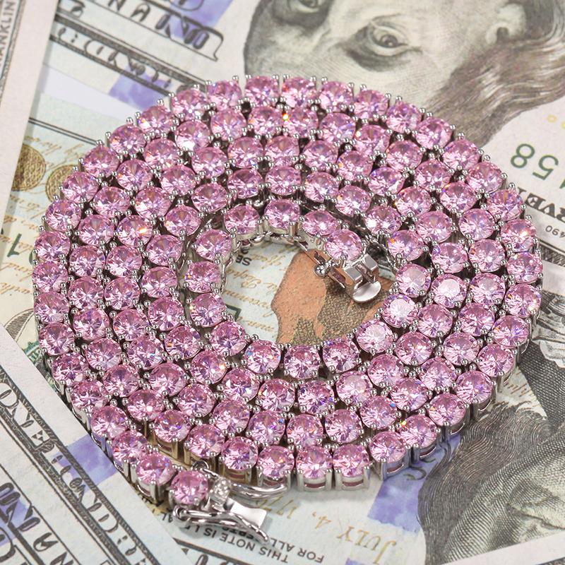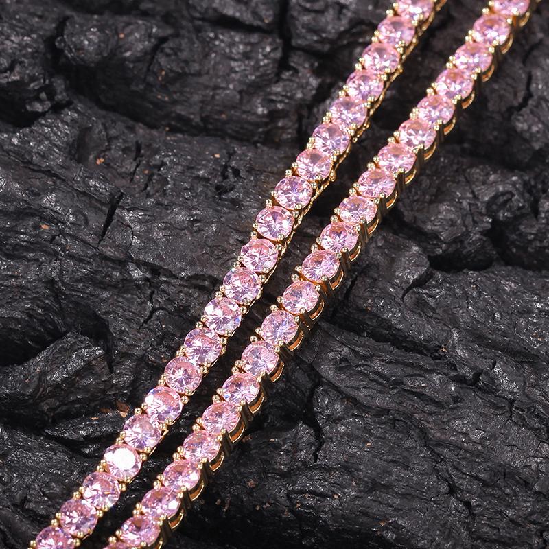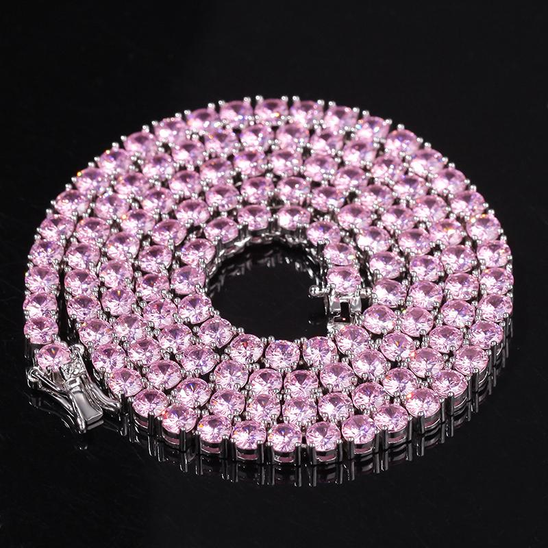 CARÁTIX - 4mm wide Pink/Blue Zircon Tennis Chokers Necklaces for Women Men Bling Iced Out 1 Row CZ Stone Link Chain Hip Hop Rapper Jewelry Valentine's Day Gift for Men & Girls & Boys Mothers' Day Gift #Springtok