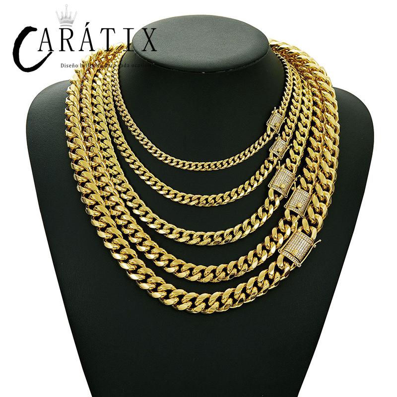 CARÁTIX - 6-14mm Bling Golden Color Stainless Steel Cuban Miami Chains Necklaces CZ Zircon Big Heavy Link Chain for Men Hip Hop Rock jewelry Valentine's Day Gift for Men & Girls & Boys Mothers' Day Gift #Springtok
