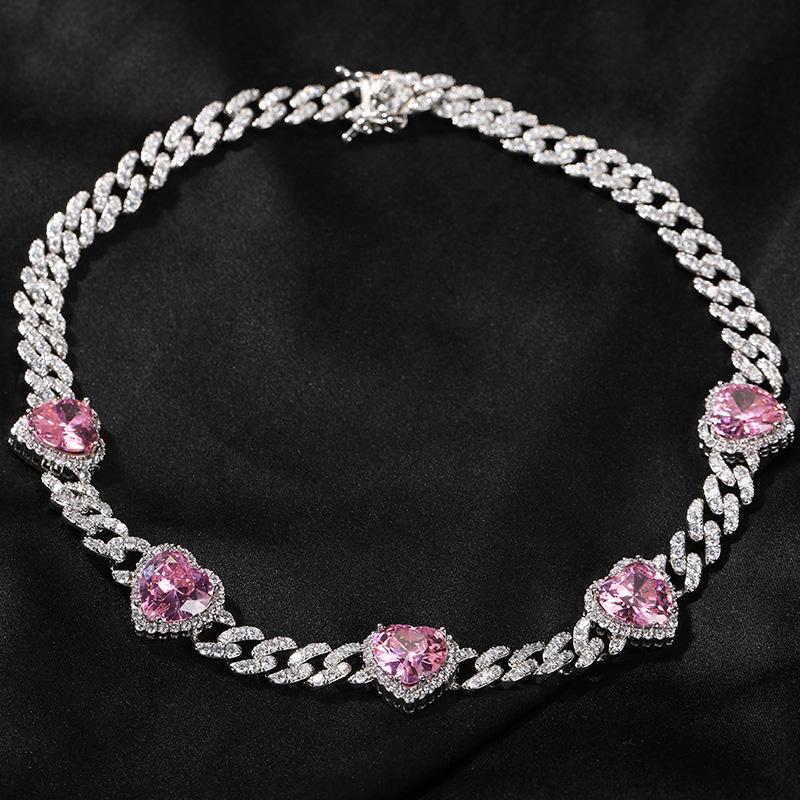 CARÁTIX 7"-24" Pink Hearts Link Chain Necklace – 5A+ CZ Iced Out Hip Hop Bling Jewelry for Men & Women | Unisex Rapper Gift