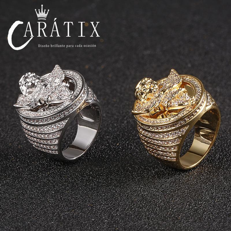 CARÁTIX Angel Avatar Ring | Micro-Inlaid Zircon Hip Hop Jewelry for Men
