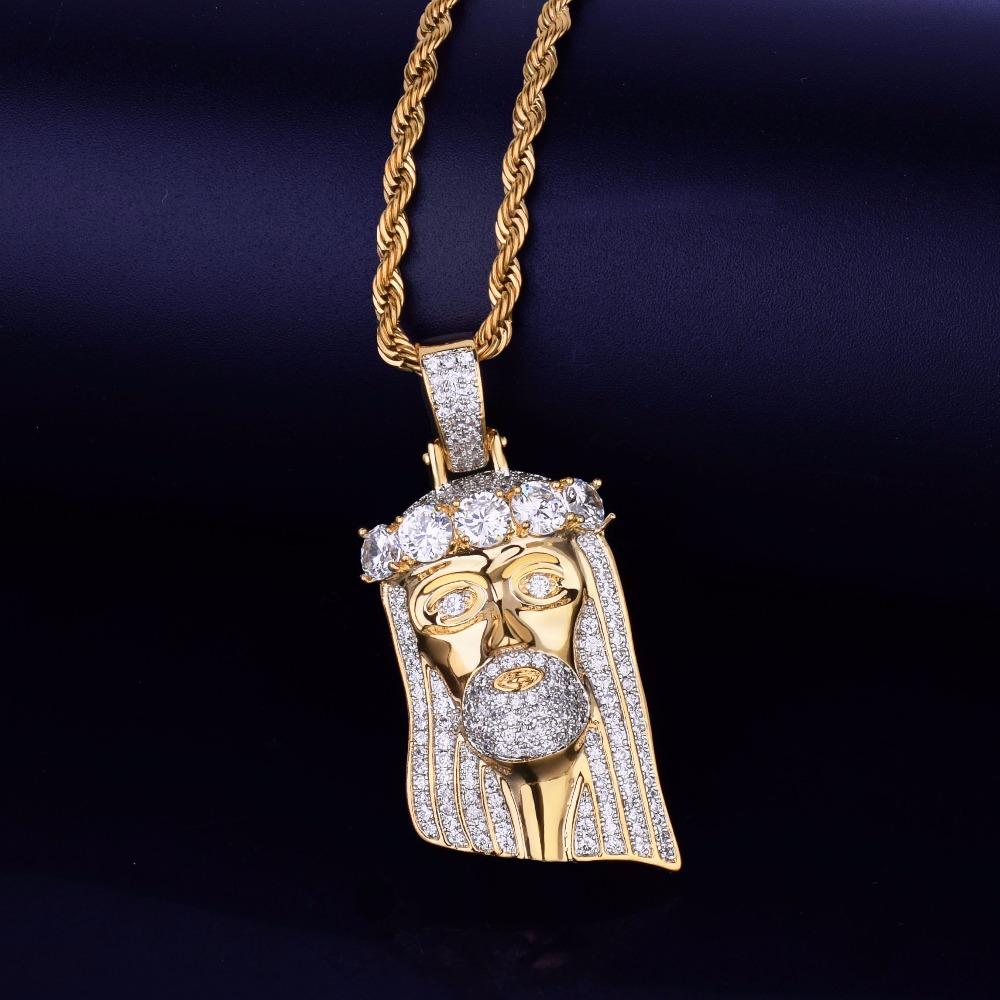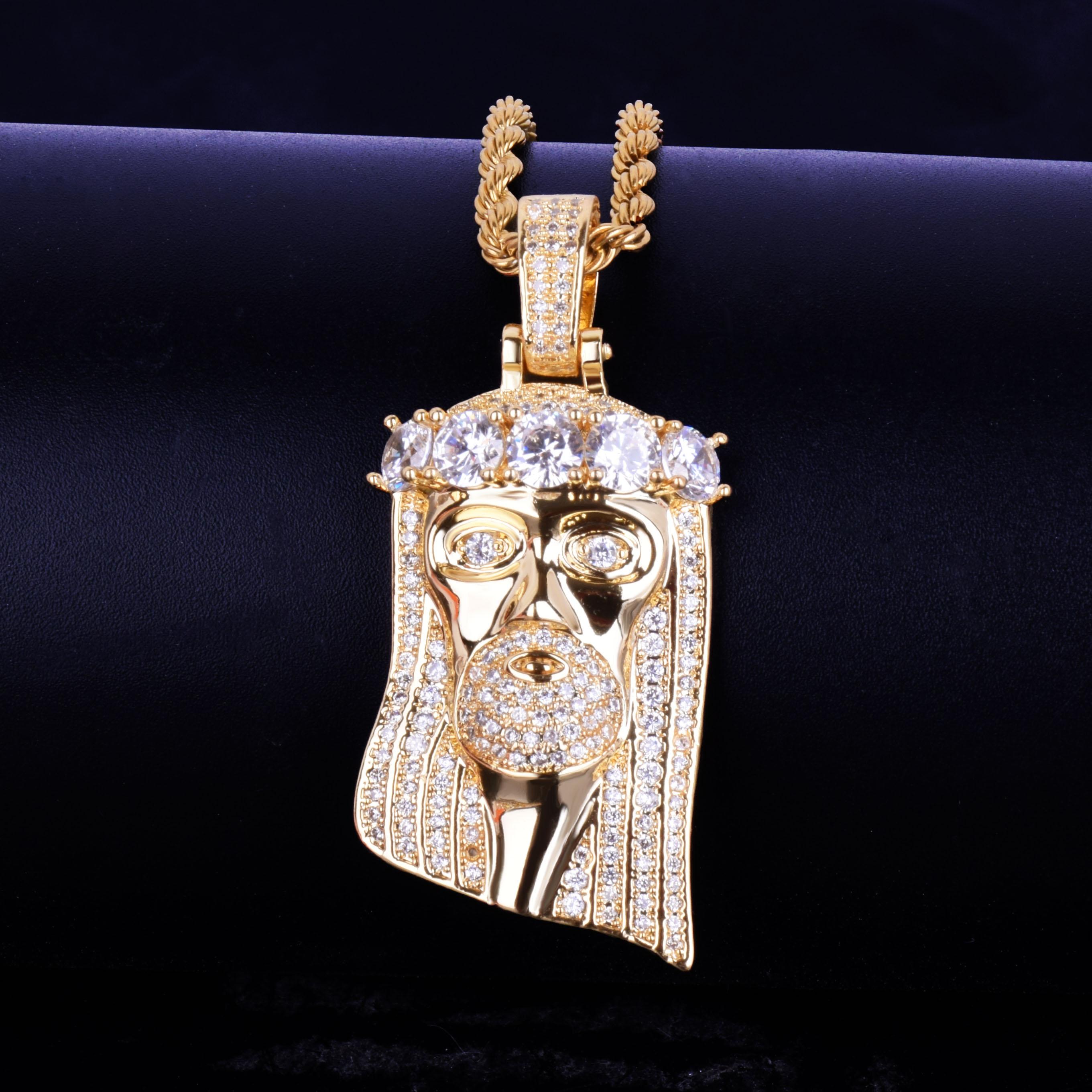 CARÁTIX - Bubble Letter Iced Out Religious Jesus Head Pendant Necklace Golden Color Bling Cubic Zircon Men's Hip Hop Jewelry For Gift Valentine's Day Gift for Men & Girls & Boys Mothers' Day Gift #Springtok