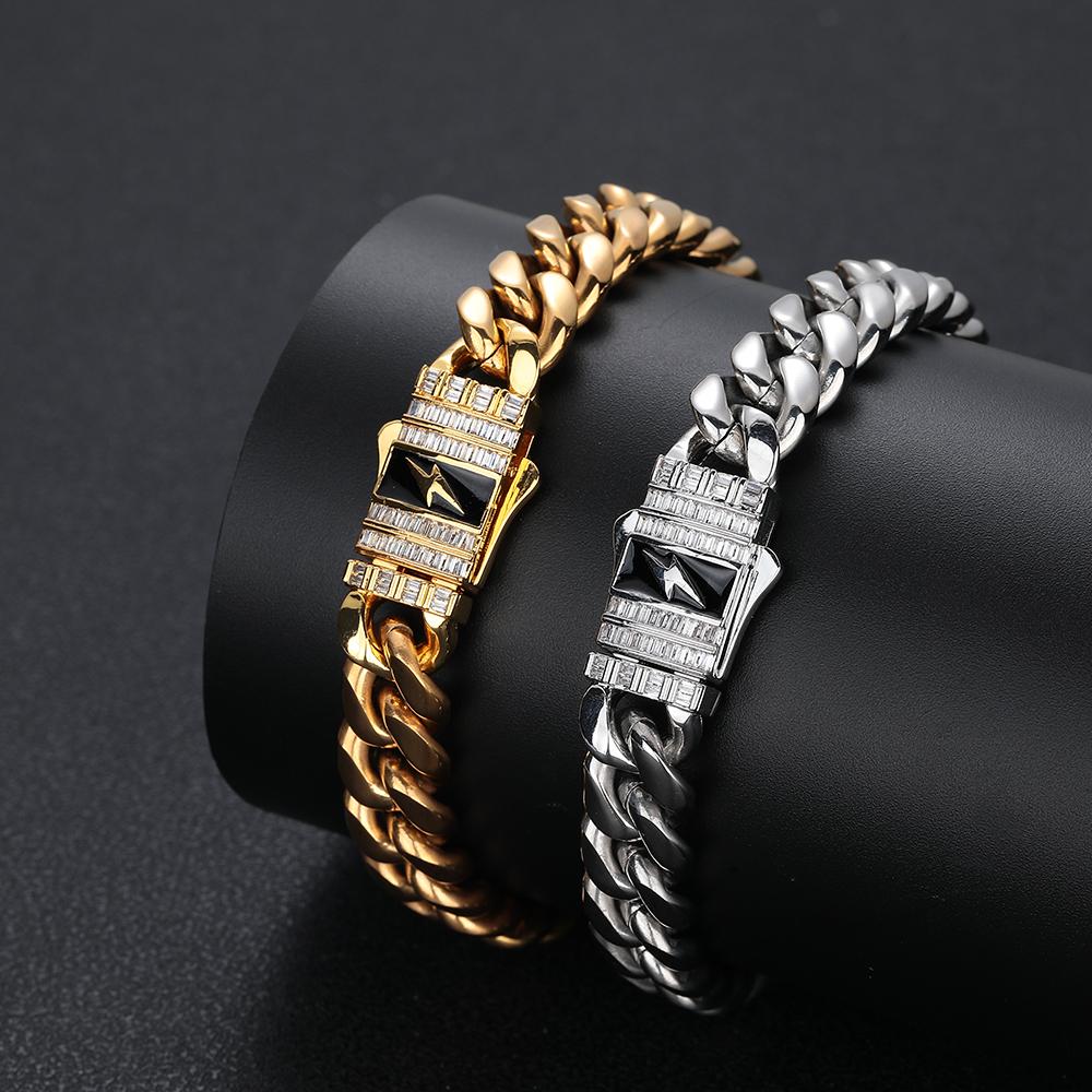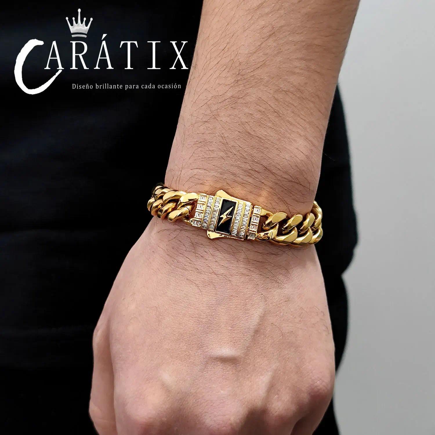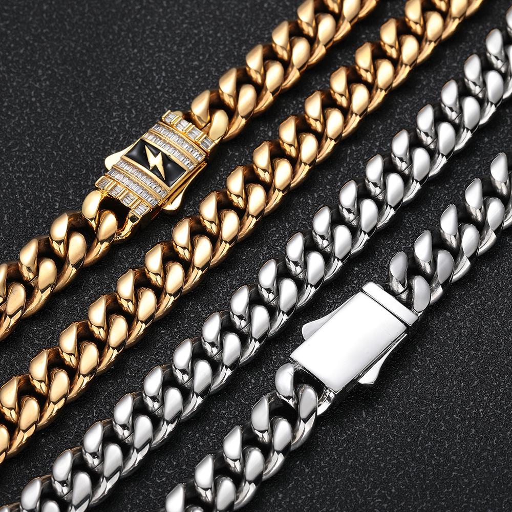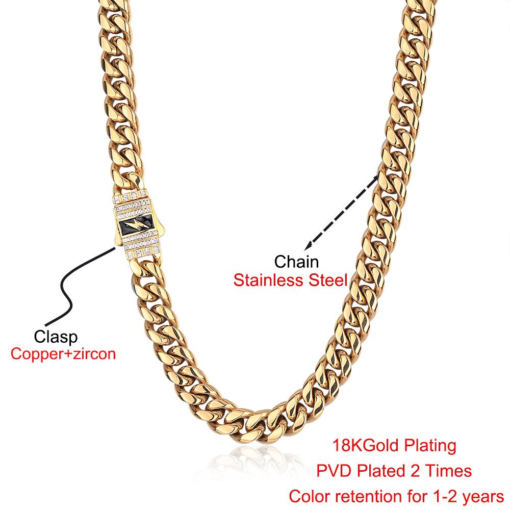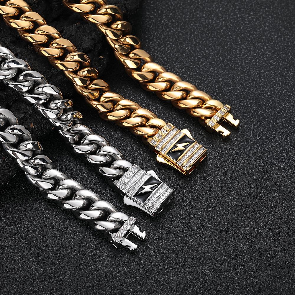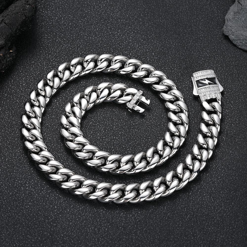 CARÁTIX - Fashion Hot Selling Stainless Steel Cuban Chain Necklace For Men 12MM Lightning Sign Clasp Bracelet Valentine's Day Gift for Men & Girls & Boys Mothers' Day Gift #Springtok