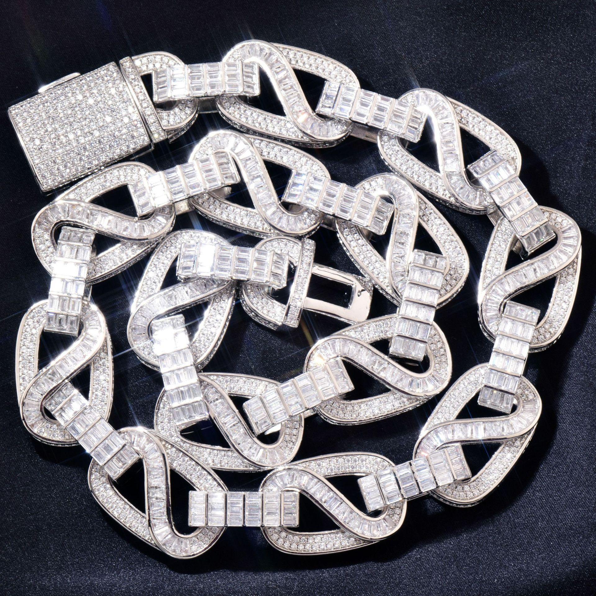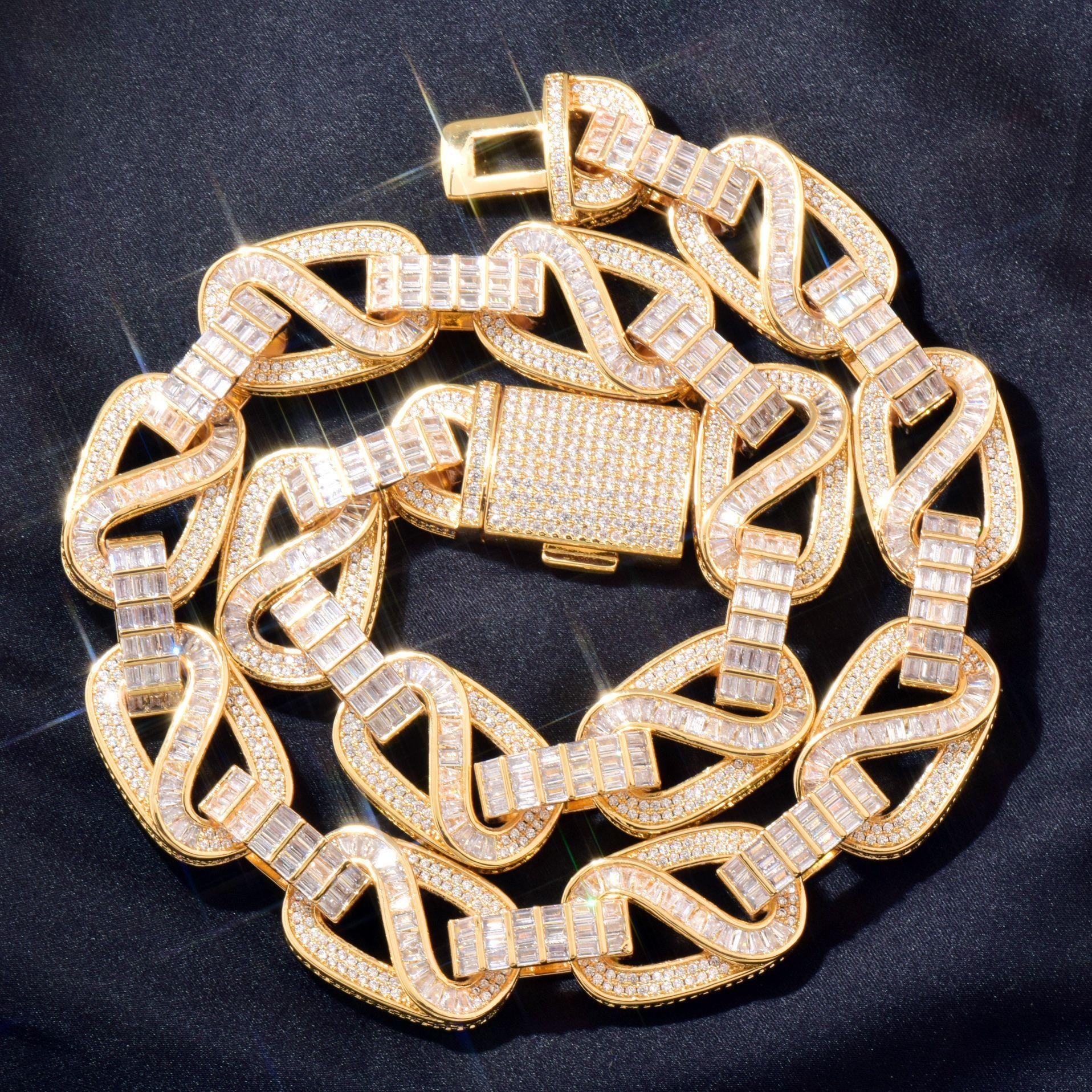 This chain stands out with its T-square geometry, symbolizing precision, confidence, and creative direction. Each Chino-style link is iced out with AAA+ cubic zirconia stones, hand-set for maximum brilliance and durability.
