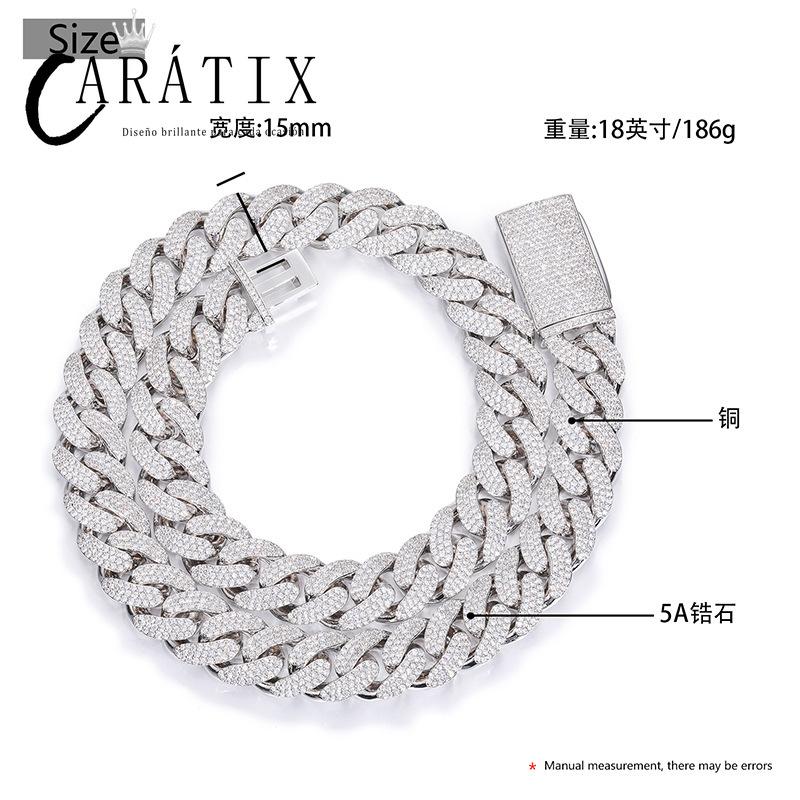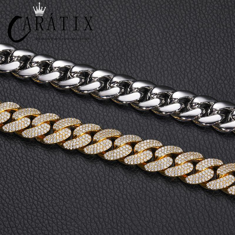 CARÁTIX - Hip Hop 3 Row CZ Stone Paved Bling Iced Out 15mm Round Cuban Miami Link Chain Necklaces for Men Rapper Jewelry Golden Silver Color Valentine's Day Gift for Men & Girls & Boys Mothers' Day Gift #Springtok
