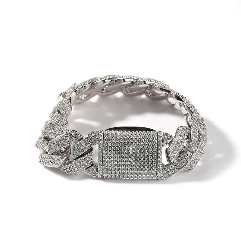 Featuring a unique square-edged Cuban link, this necklace blends structure with strength. Each 20mm link is paved with triple rows of brilliant CZ stones, offering a full iced-out look that reflects power and precision.