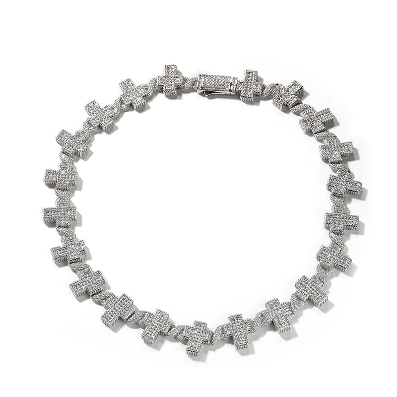 Each infinity cross link represents eternity and unity, fully paved with 5A+ CZ stones for diamond-level brilliance. The solid structure and detailed symmetry create an elegant yet powerful statement, perfect for stage performances or everyday streetwear.