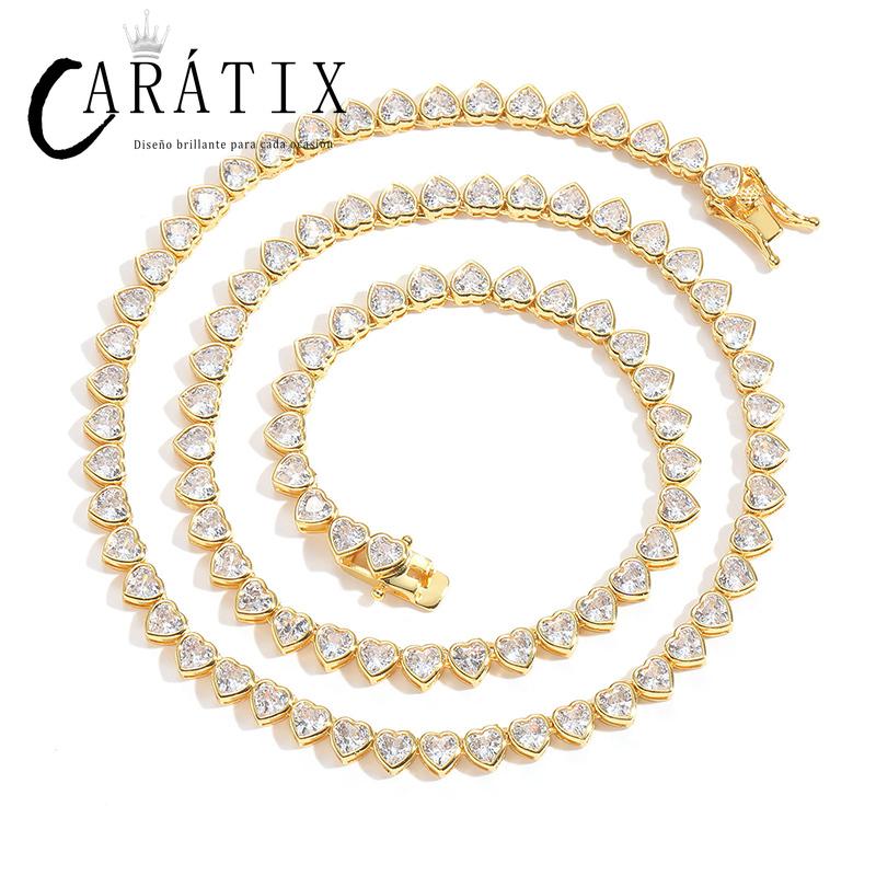 CARÁTIX - Hip Hop Bing Iced Out Heart Shape CZ Stone Tennis Link Chain Chokers Necklaces for Men Women Unisex Lovers Rapper Jewelry Gift Valentine's Day Gift for Men & Girls & Boys Mothers' Day Gift #Springtok