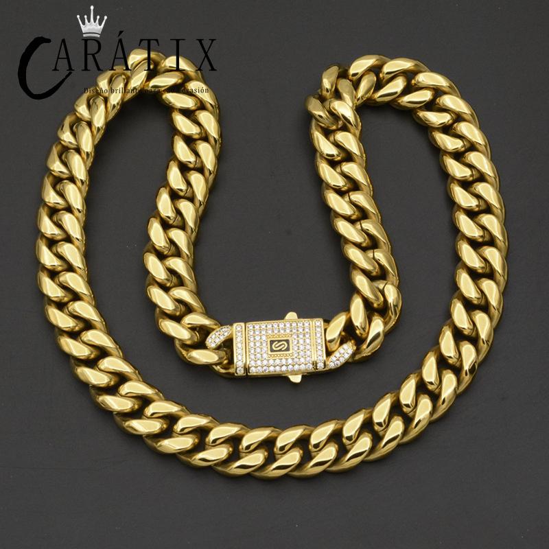 💎 CARÁTIX Hip-Hop Golden Stainless Steel Cuban Miami Chain | CZ Zircon Box Lock Link Necklace for Men