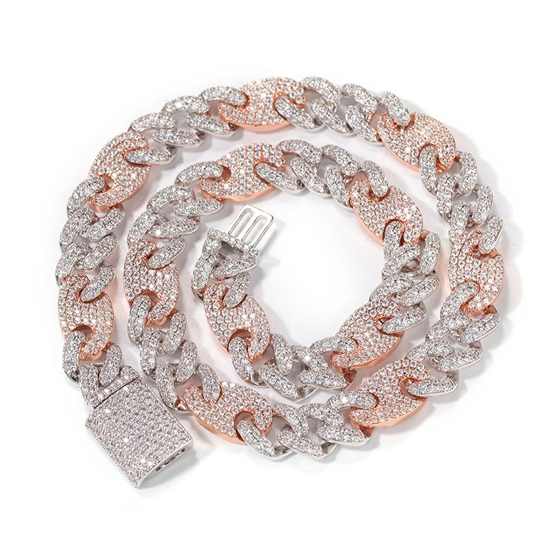 The coffee bean-shaped Cuban links are micro paved with AAA-grade CZ stones, ensuring a smooth, detailed, and ultra-reflective surface. Each link gleams with precise craftsmanship, giving this piece its distinct high-end texture and visual depth.