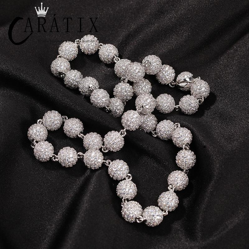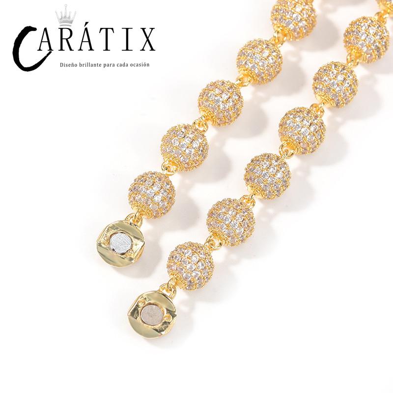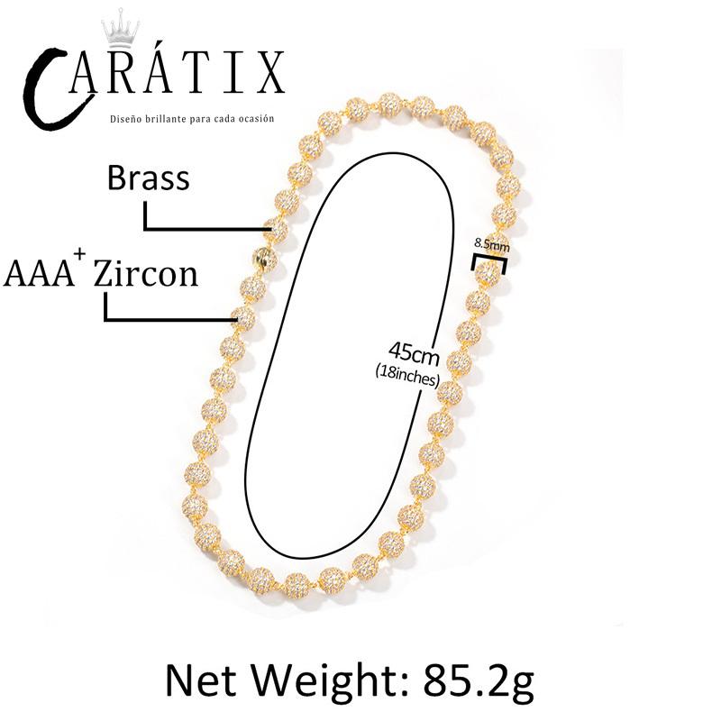 💎 CARÁTIX Micro-Paved Bead Link Chain | Iced-Out CZ Bling Hip-Hop Necklace for Men & Women