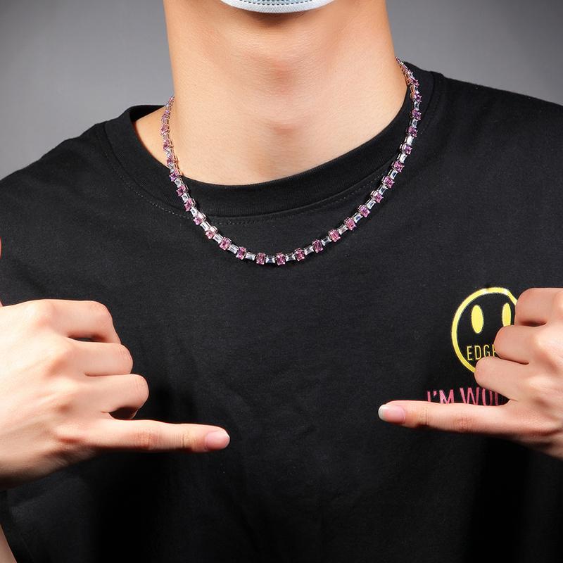 CARÁTIX - Hip Hop Pink White Square CZ Stone Bling Iced Out Tennis Link Chain Chokers Necklaces for Men Women Unisex Rapper Jewelry Valentine's Day Gift for Men & Girls & Boys Mothers' Day Gift #Springtok