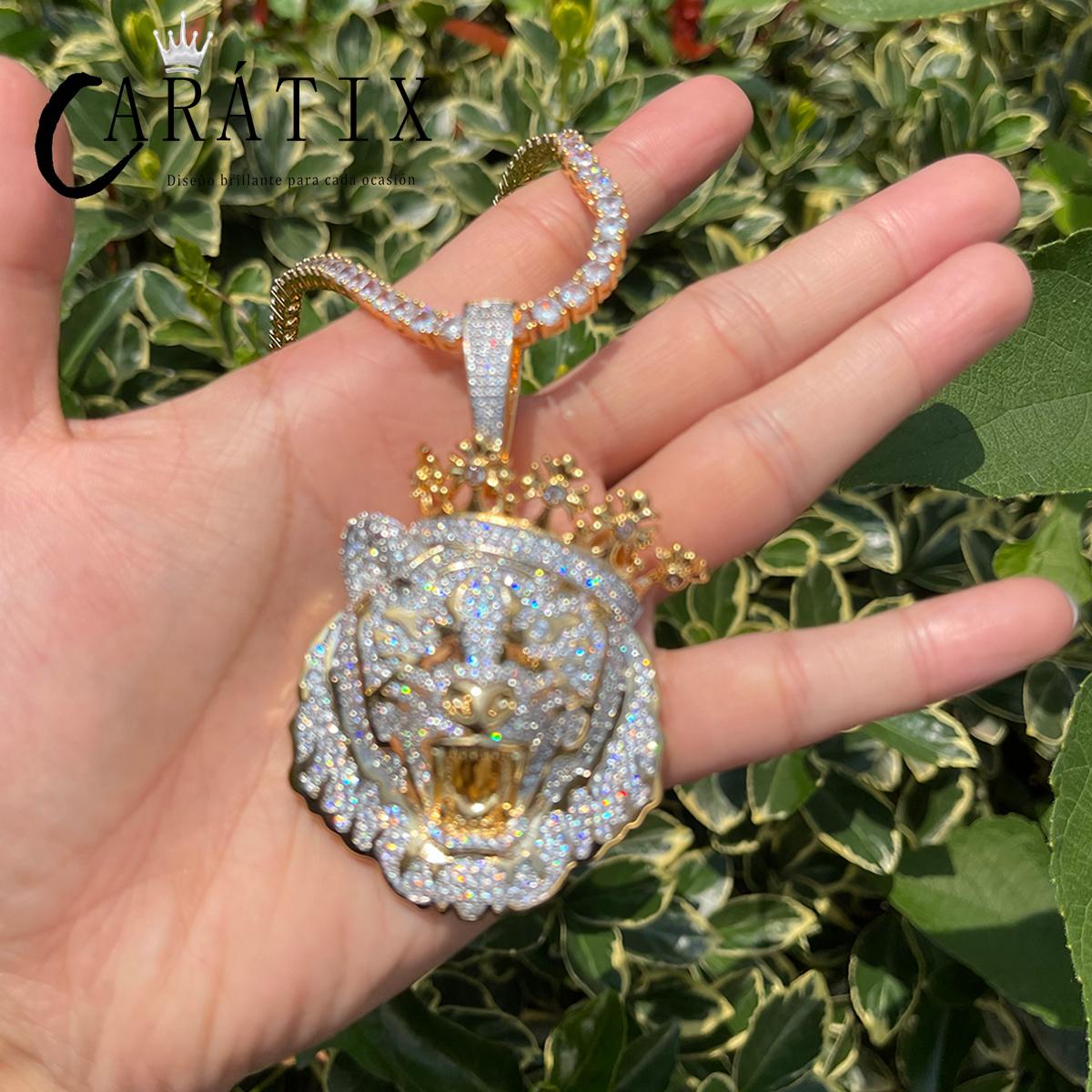 CARÁTIX -Lion Crown Necklace for Men Iced Out Prong Setting Pendant Chain Double Color Hip Hop Jewelry Valentine's Day Gift for Men & Girls & Boys Mothers' Day Gift #Springtok