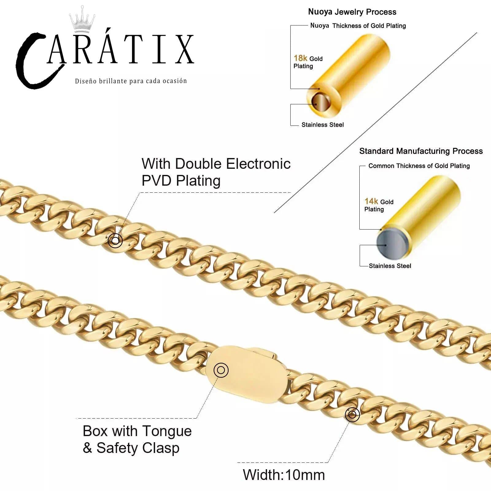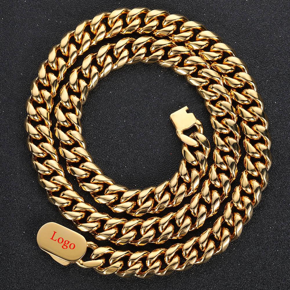 CARÁTIX - Man Chain Custom Logo Necklace 316L Stainless Steel Miami Curb Cuban Link Chain Golden Necklace Fashion Jewelry Gift Valentine's Day Gift for Men & Girls & Boys Mothers' Day Gift #Springtok