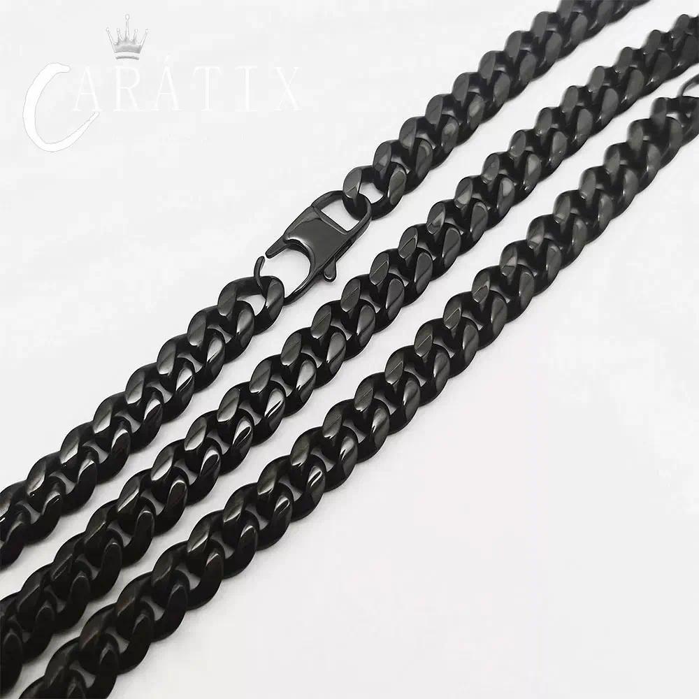 CARÁTIX - Nuoya 10mm Black Plated Stainless Steel Miami Cuban Link Necklace Cuban Chains for Men Women Valentine's Day Gift for Men & Girls & Boys Mothers' Day Gift #Springtok