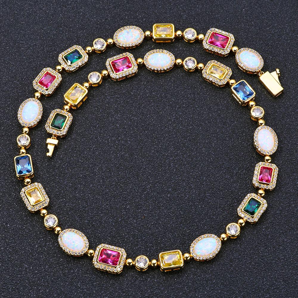CARÁTIX - Rainbow Geometric Bling CZ Stone Chain Necklace Multicolor Round Oval Gemstone White Choker for Women Men Valentine's Day Gift for Men & Girls & Boys Mothers' Day Gift #Springtok