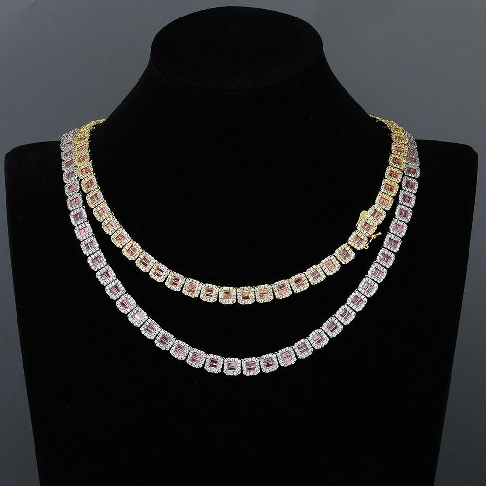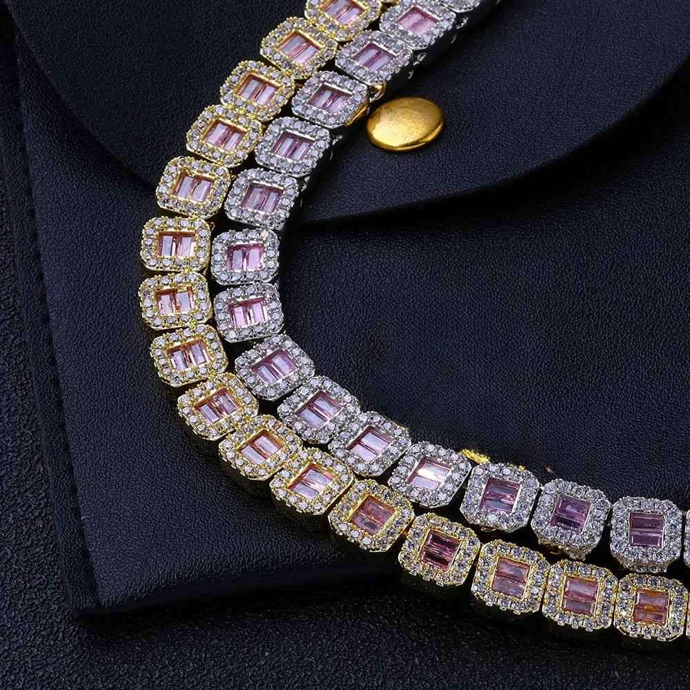 CARÁTIX - Women Dainty Cluster Tennis Necklace Bling Pink Cz Matching Clear Rectangle Cubic Zirconia Tennis Chain Men Valentine's Day Gift for Men & Girls & Boys Mothers' Day Gift #Springtok