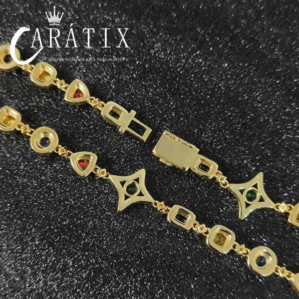 CARÁTIX - Women Rainbow Necklace Circle rectangle triangle Green/Blue/Red/yellow Color Gemstone Link ChainValentine's Day Gift for Men & Girls & Boys Mothers' Day Gift #Springtok