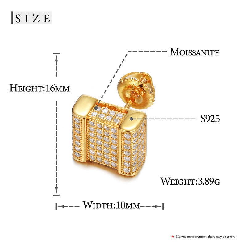 💎 Flooded Ice Genuine Diamond Square-Cut 925 Sterling Silver Hip-Hop Earrings