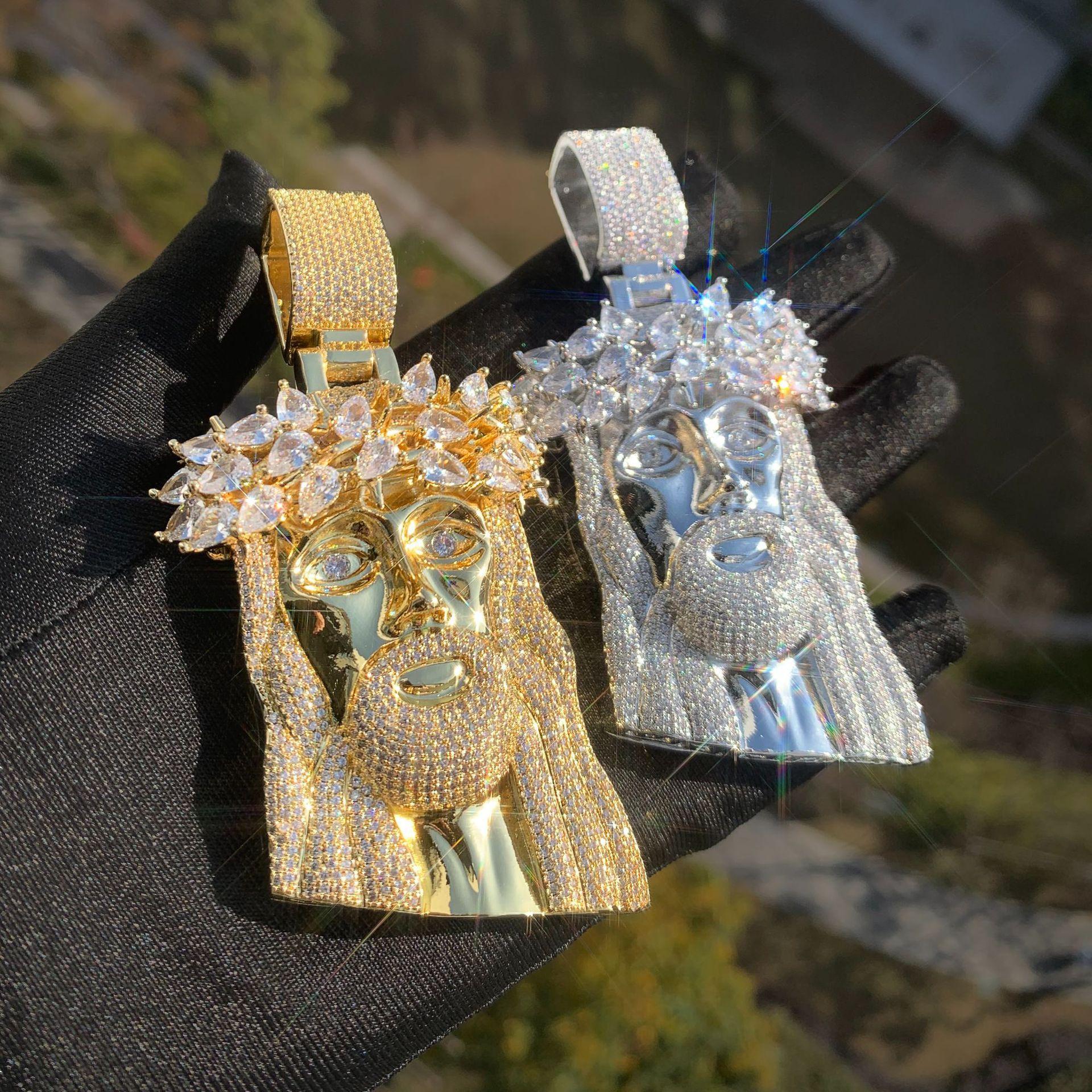 Hip Hop Jesus Head Pendant Necklace | Iced Out Zircon Water Drop Halo Design | Vintage Style Jewelry