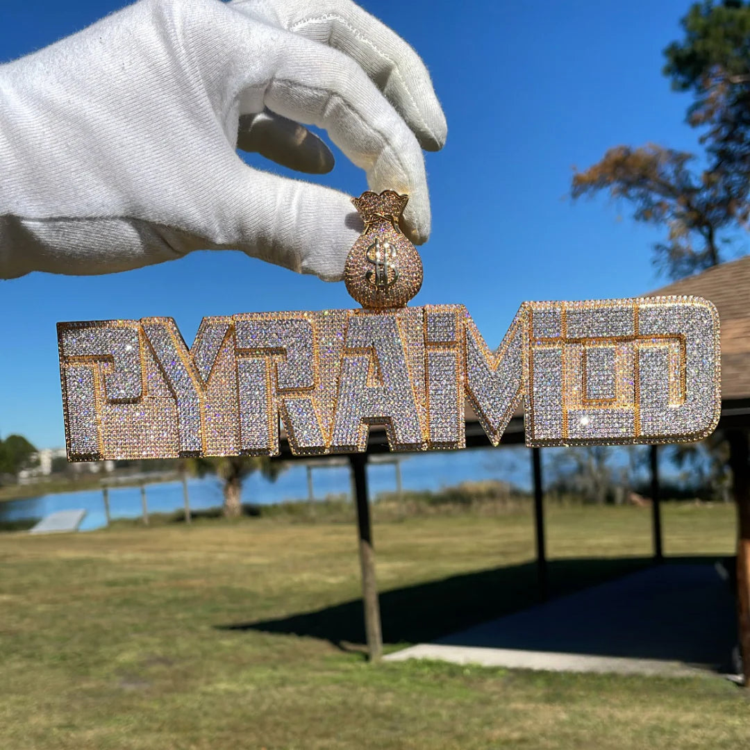 Money Bag Bail Two Layers Iced Out Personalized Custom Name Necklace Pendant – Luxury Hip Hop Jewelry for Men & Women