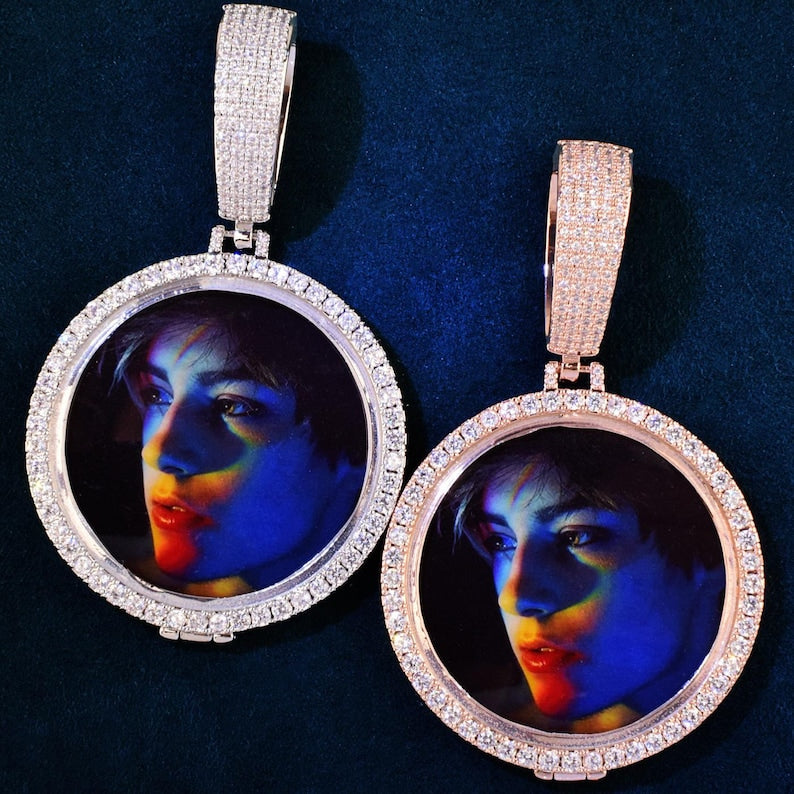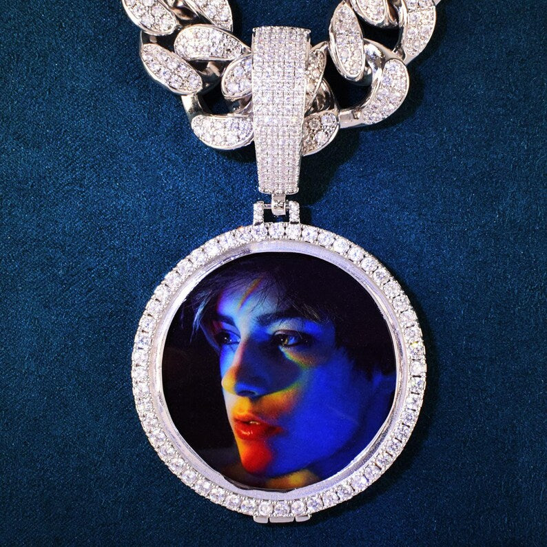 Celebrate your most cherished memories with a bold and brilliant statement piece. Our Custom Round Photo Necklace is more than just jewelry; it's a wearable canvas for your favorite moments. Designed with a hip-hop-inspired edge, this fully iced-out pendant combines the sparkle of premium stones with the personal touch of a custom photo, creating a unique accessory that truly tells your story.
